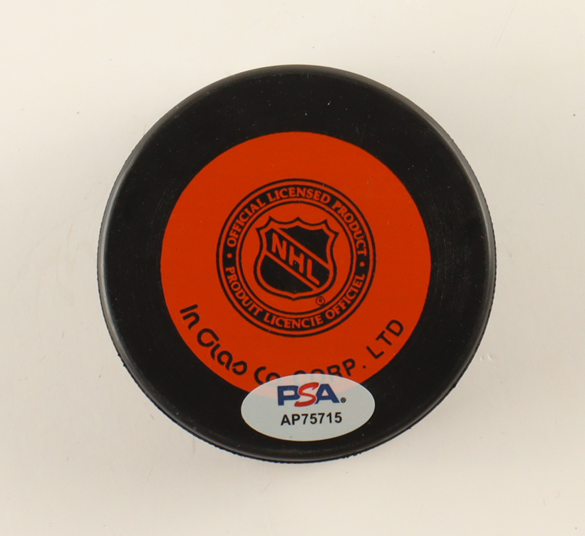 Rod Gilbert Signed Rangers Logo Hockey Puck (PSA)