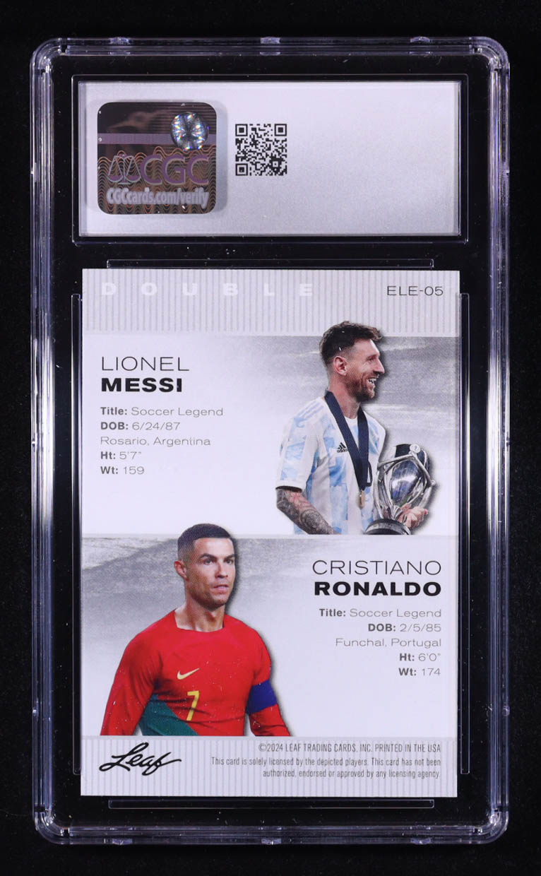 Lionel Messi / Cristiano Ronaldo 2024 Leaf Special Release Exclusive Legends Edition #ELE05 (CGC 10)