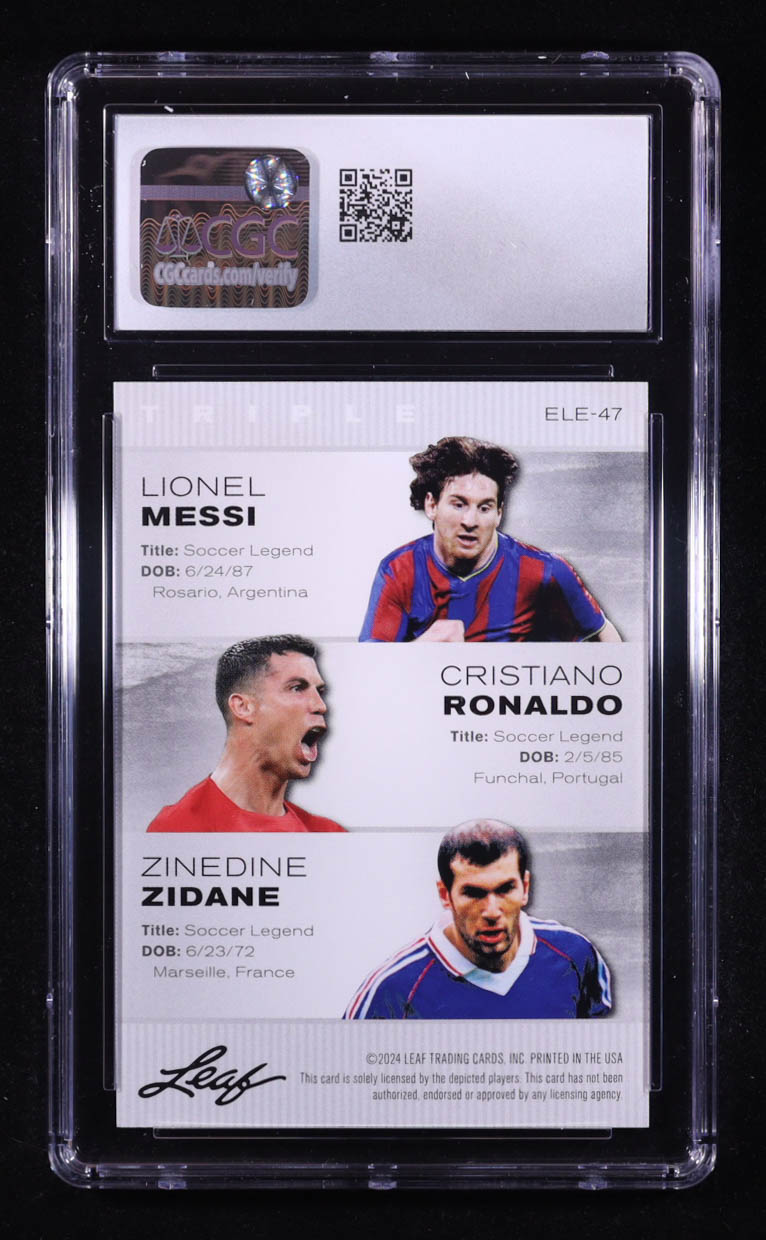 Lionel Messi / Cristiano Ronaldo / Zinedine Zidane 2024 Leaf Special Release Exclusive Legends Edition #ELE47 (CGC 10)