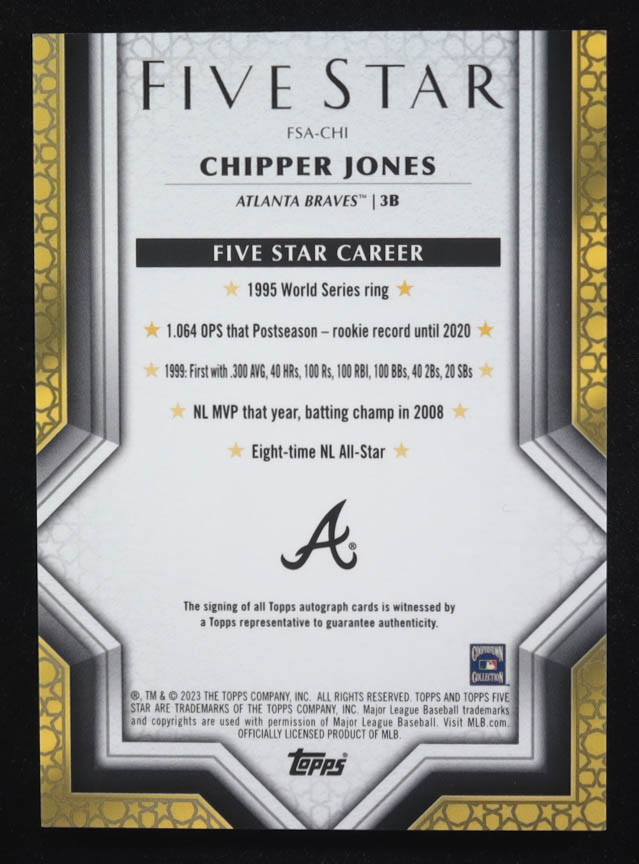 Chipper Jones 2023 Topps Five Star Autographs Aqua #FSACHI #66/75