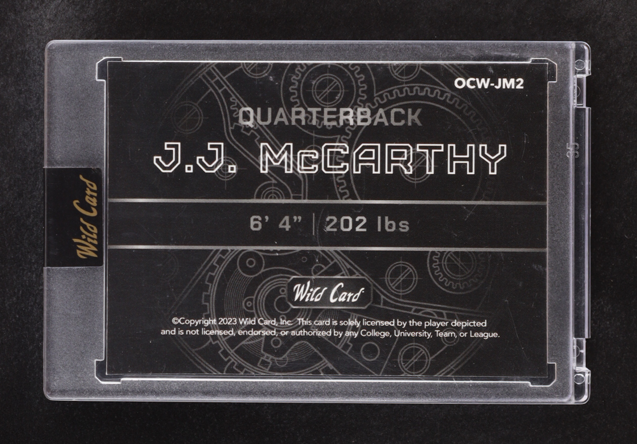 J.J. McCarthy 2023 Wild Card QB 1 On The Clock Purple #OCW-JM2 RC #2/5