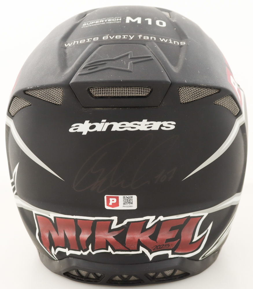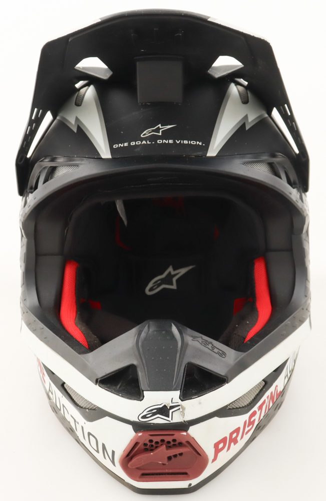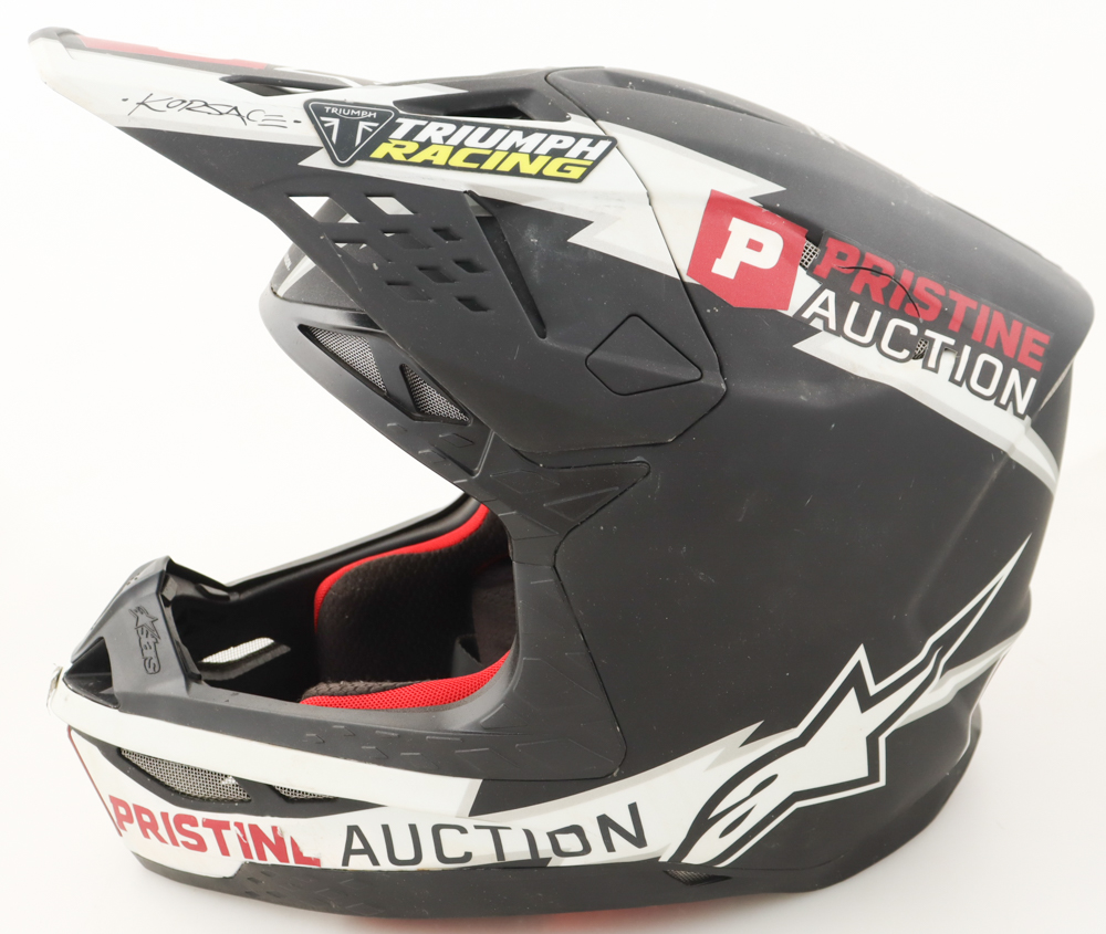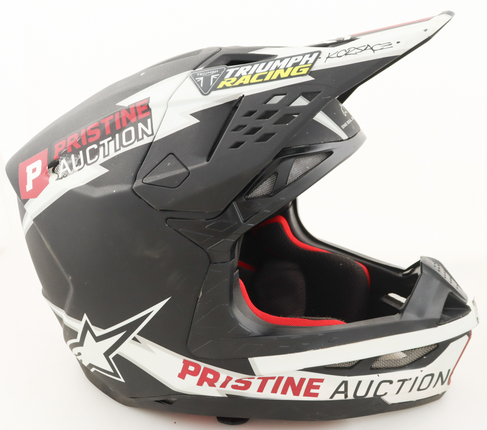 Triumph Racing Race-Used Alpinestars Motorcross Helmet has been hand-signed by Mikkel Haarup. The Helmet was used at the Ironman National on August 9th, 2025