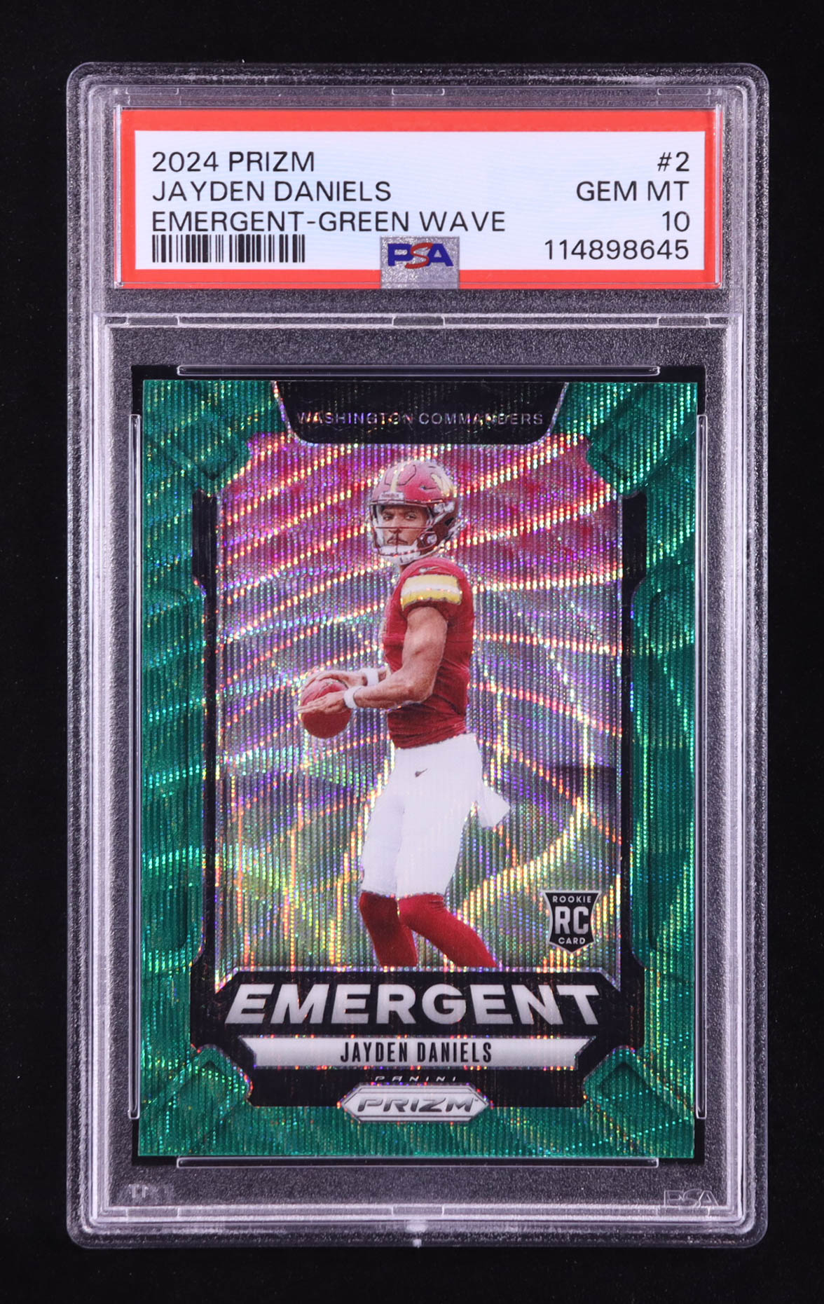 Jayden Daniels 2024 Panini Prizm Emergent Prizms Green Wave #2 RC (PSA 10)
