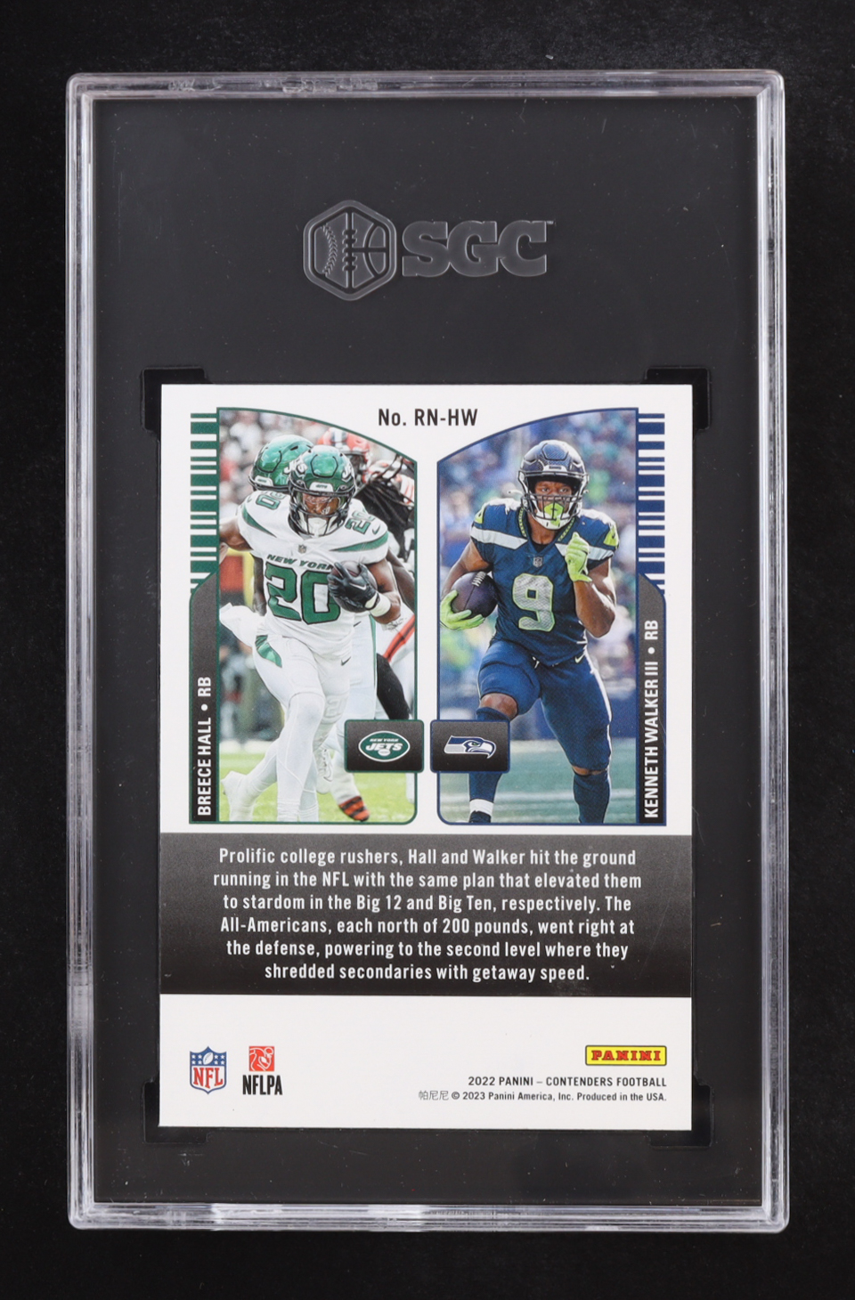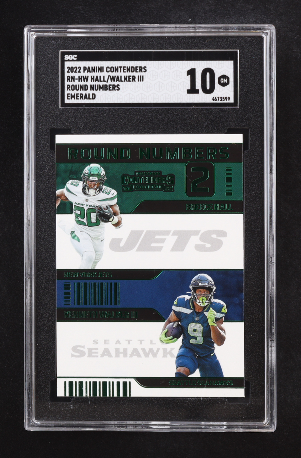 Breece Hall/Kenneth Walker III 2022 Panini Contenders Round Numbers Emerald #RN-HW RC (SGC 10)