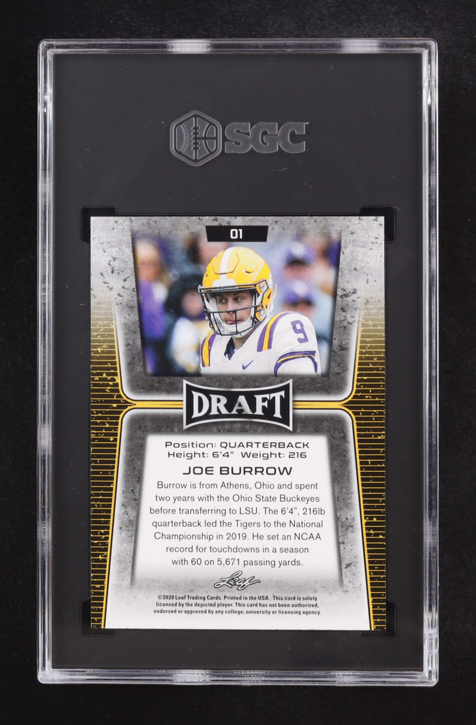 Joe Burrow 2020 Leaf Draft Gold #01 RC (SGC 10)