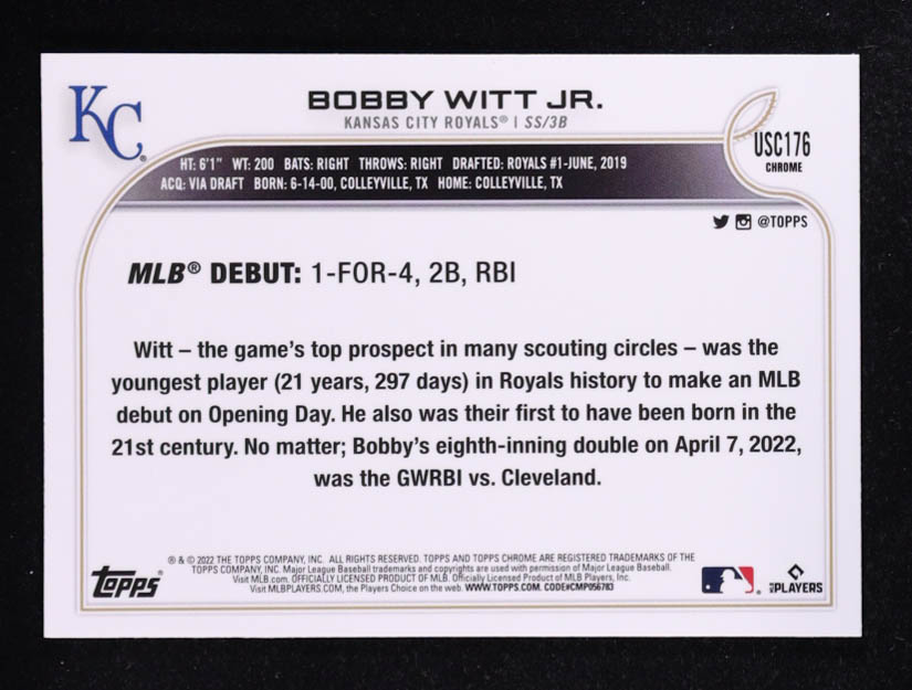 Bobby Witt Jr. 2022 Topps Chrome Update Purple Refractors #USC176 RC