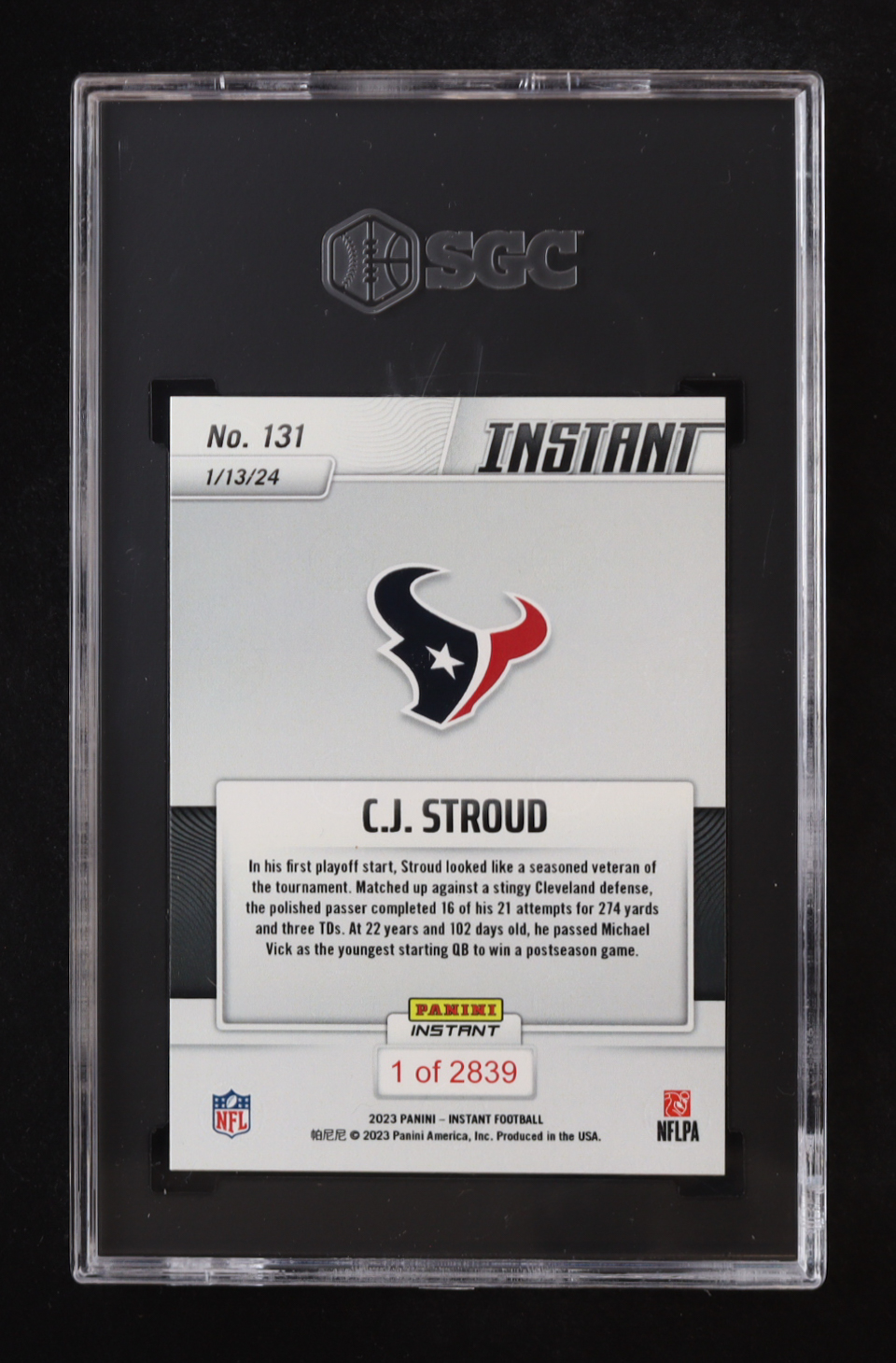 CJ Stroud 2023 Panini Instant Milestone NFL Wild Card #131 RC #1/2839 (SGC 9.5)