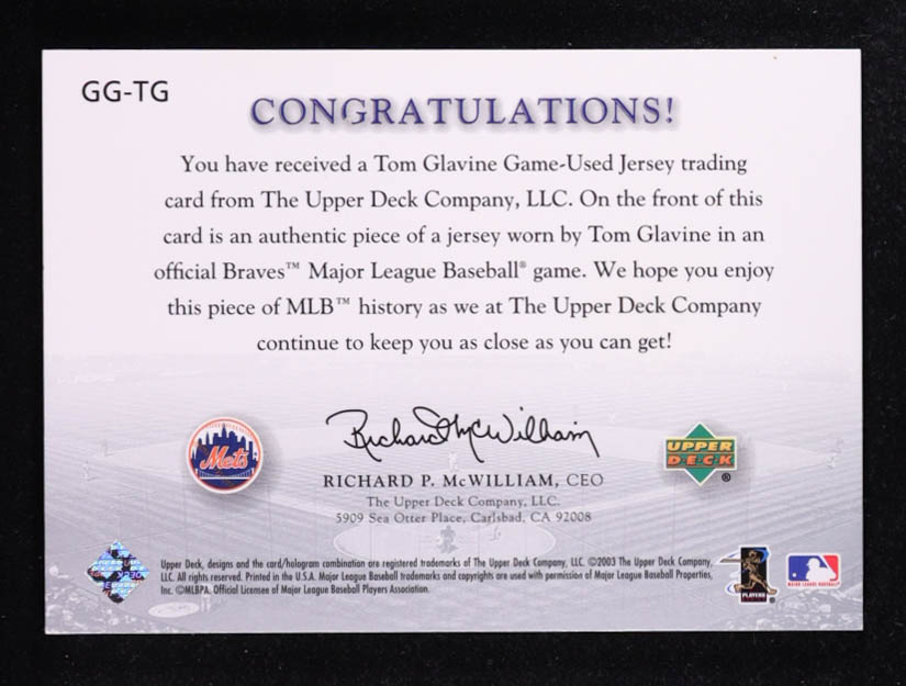 Tom Glavine 2003 Upper Deck Game Face Gear #TG