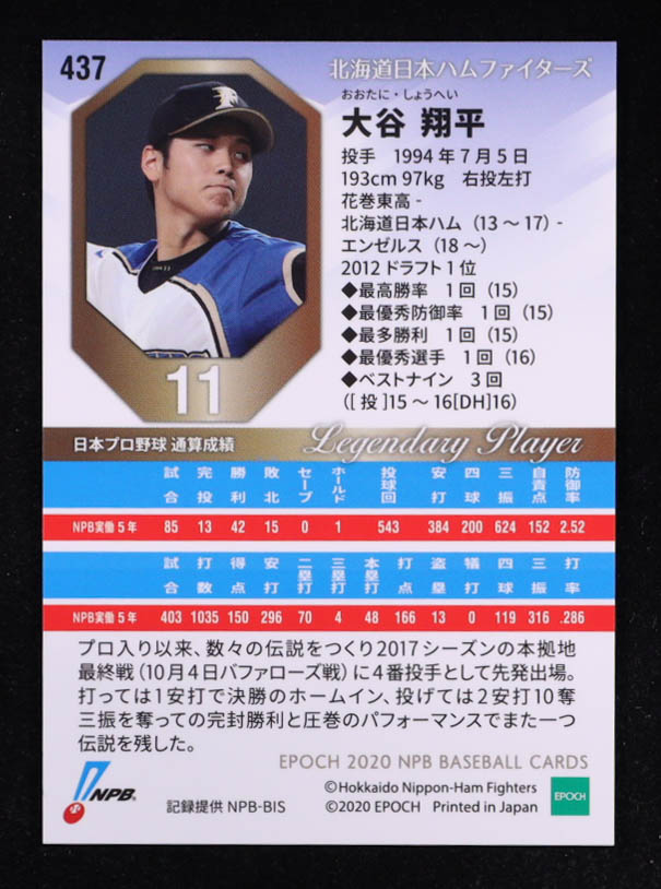 Shohei Ohtani 2020 Epoch NPB Legendary #437