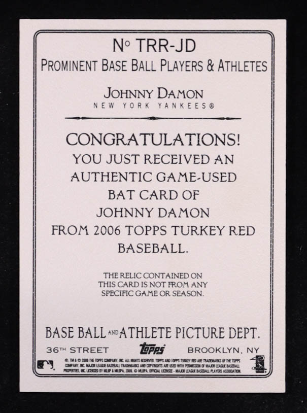 Johnny Damon 2006 Topps Turkey Red Relics Bat #JD