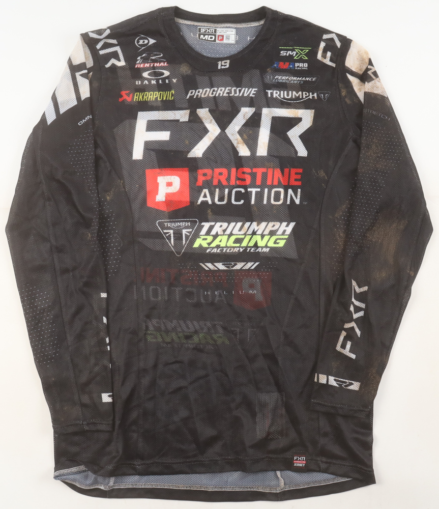 Authentic race-used FXR Triumph Racing Motorcross Jersey, size M, has been hand-signed by Jordon Smith. Jersey was used during the 2025 Inronman National on August 9th, 2025.