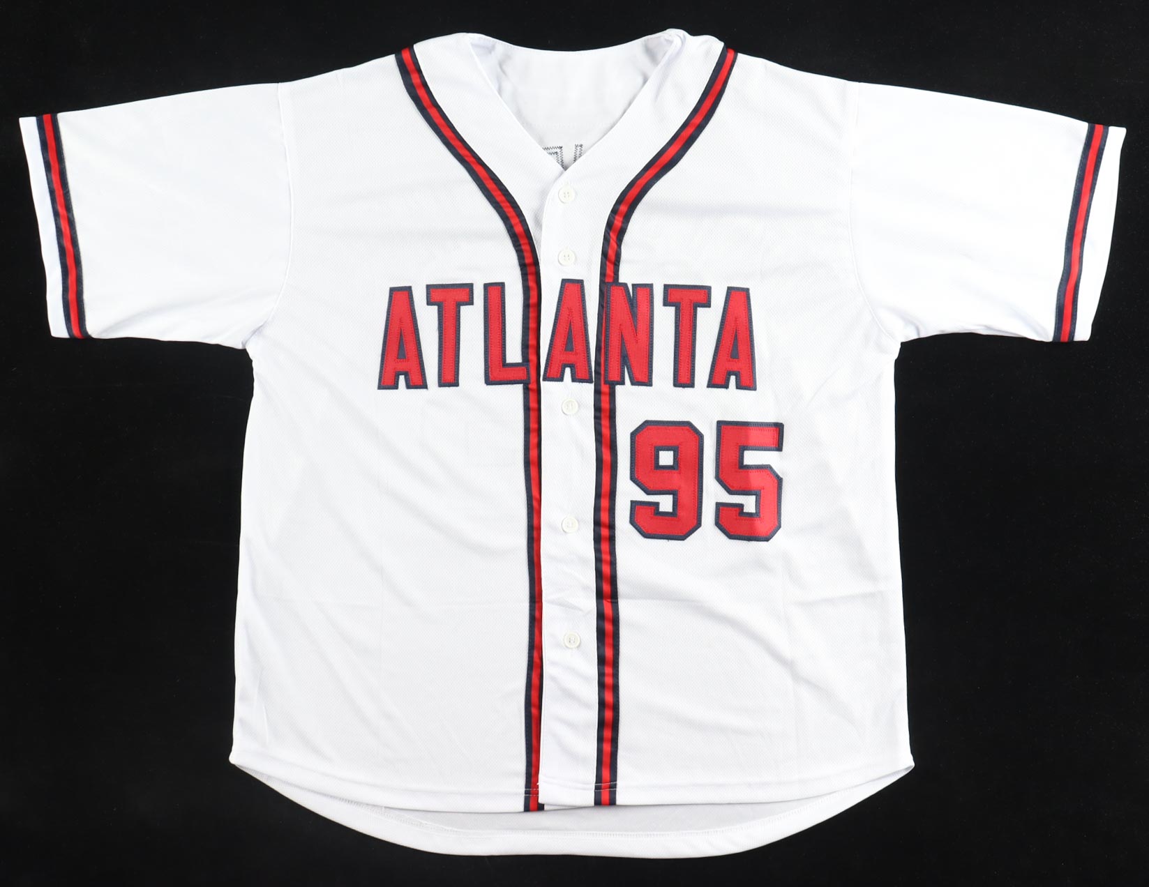 Custom jersey. Everything is sewn on, size XL. Hand-signed by (6) including Dave Justice, Steve Avery, Mark Wohlers, Kent Mercker, Javier Lopez, and Mike Deveraux.