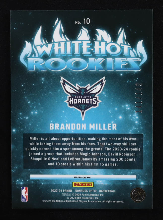 Brandon Miller 2023-24 Donruss Optic White Hot Rookies Lime Green #10 #141/149 RC
