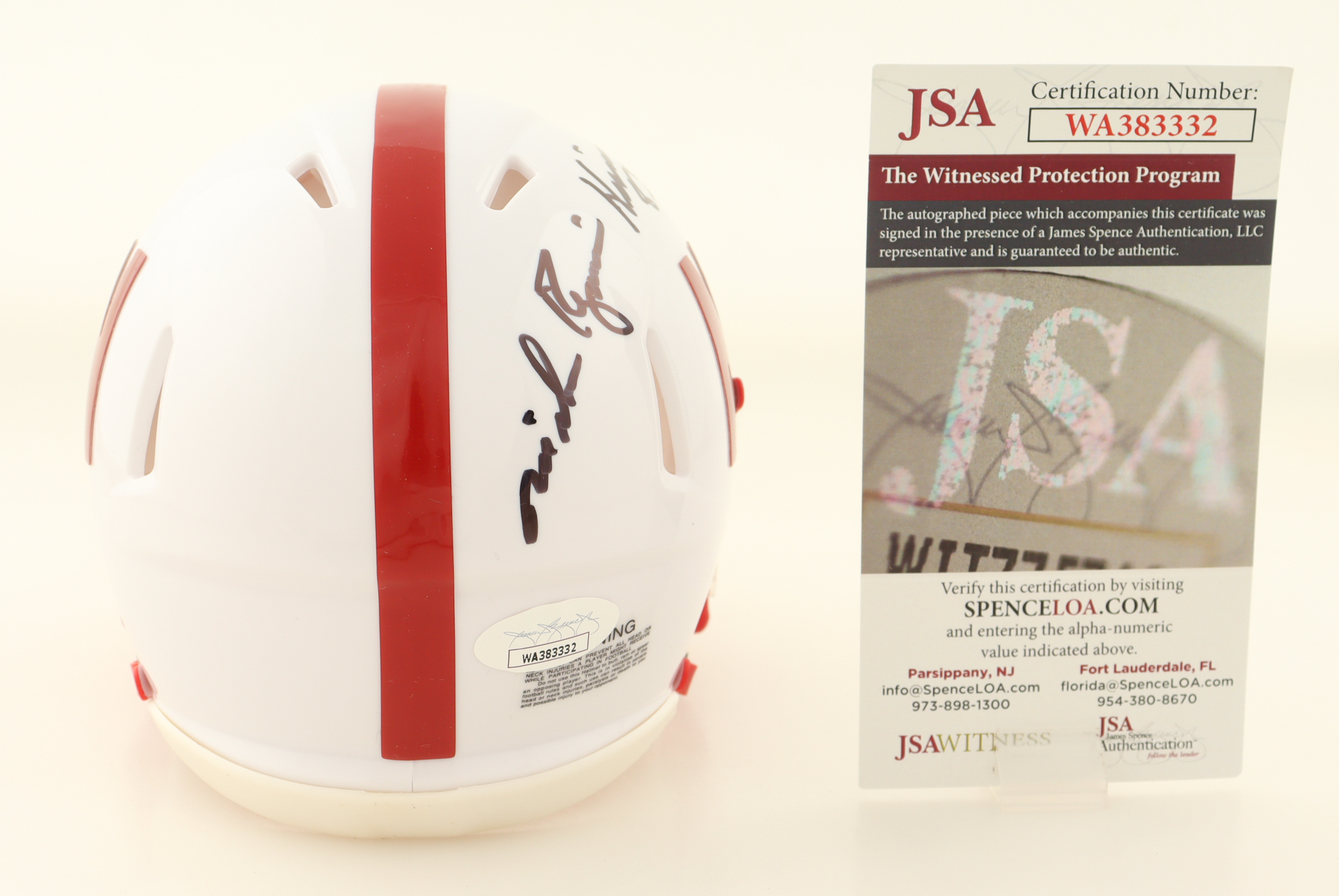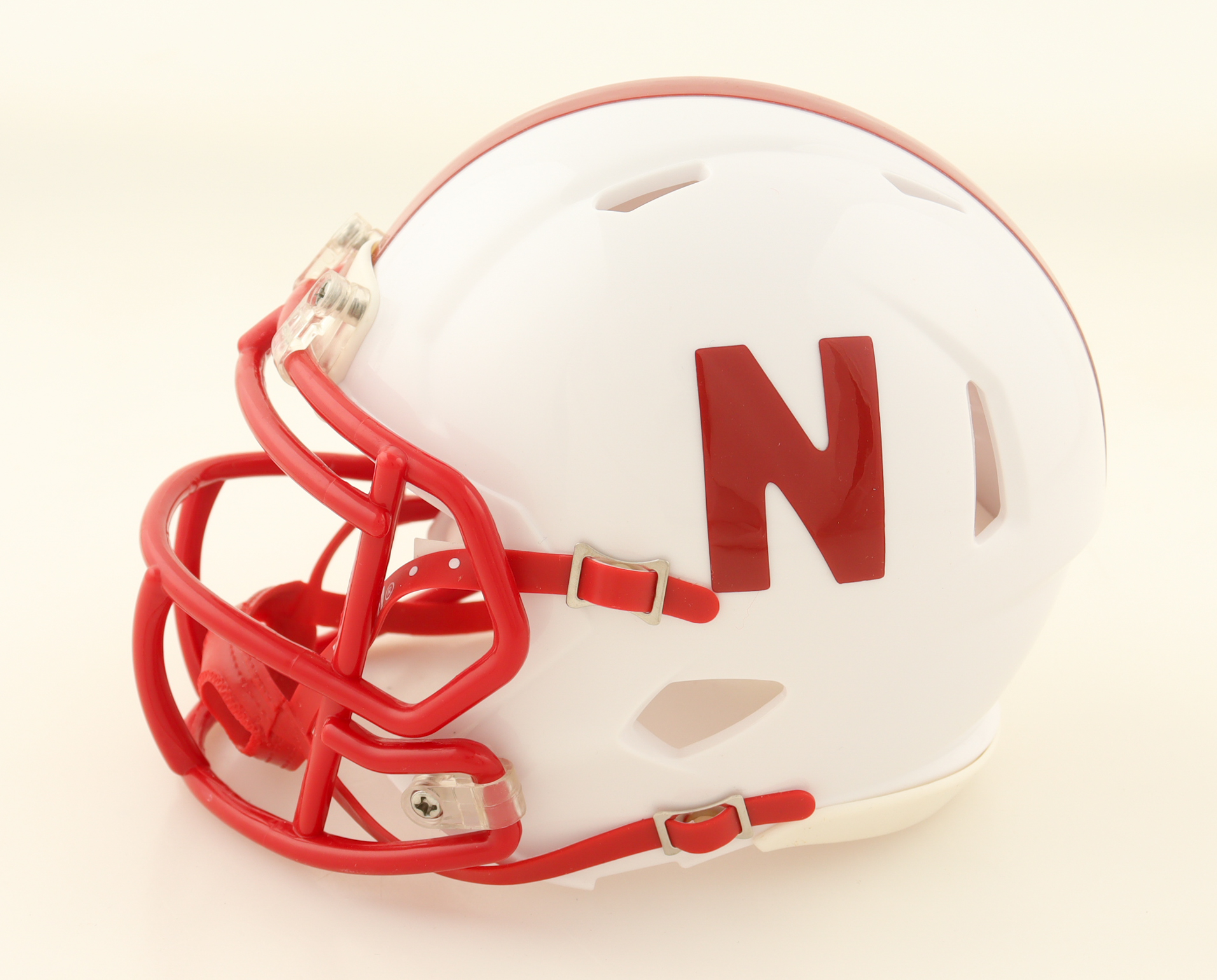 Riddell Nebraska Cornhuskers Speed Mini helmet has been hand-signed and inscribed by Mike Rozier.