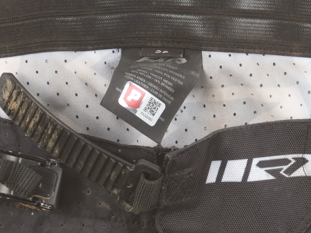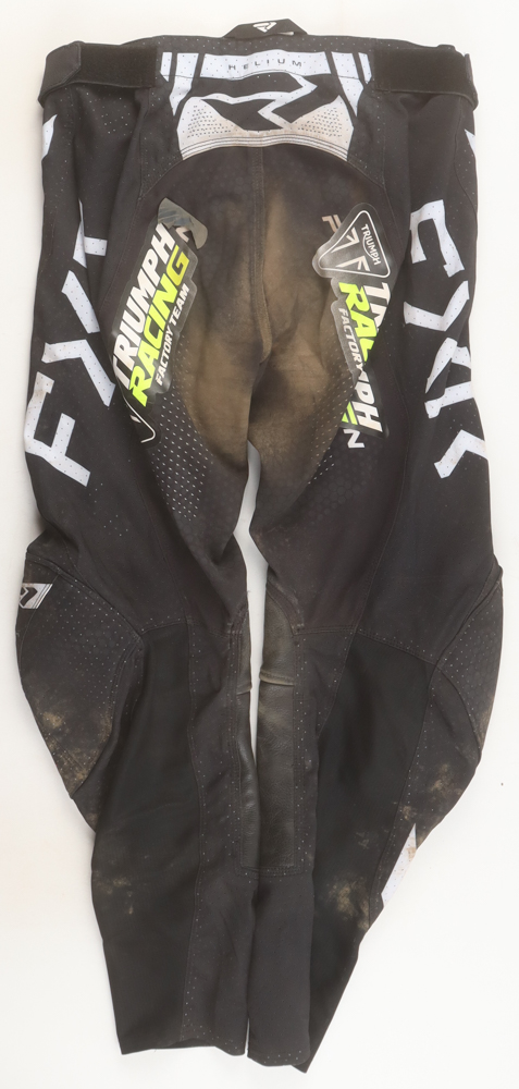 FXR motocross race pants. Race-used at the Ironman National AMA Pro Motocross Championship on August 16, 2025 and hand-signed by Jalek Swoll.