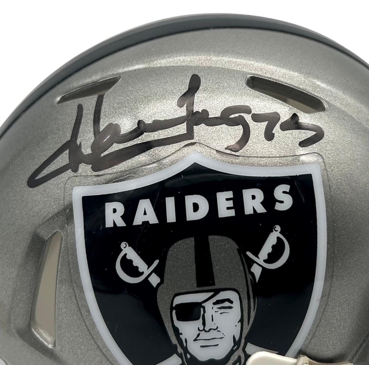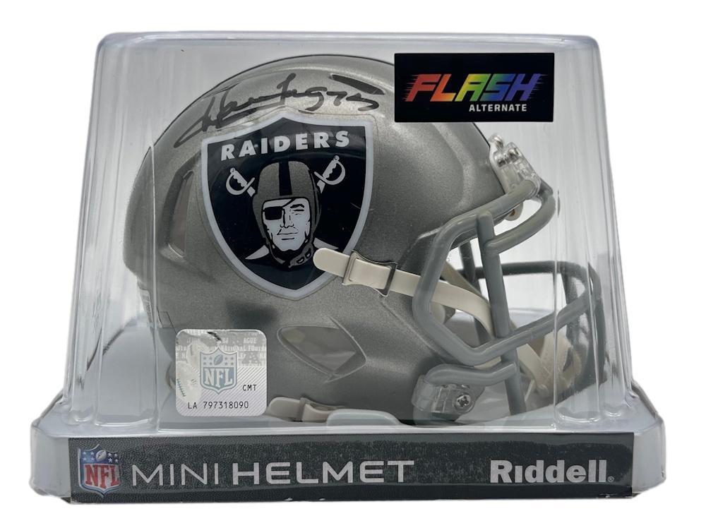 Riddell Oakland Raiders Flash Alternate Speed mini helmet has been hand-signed by Howie Long (HOF).