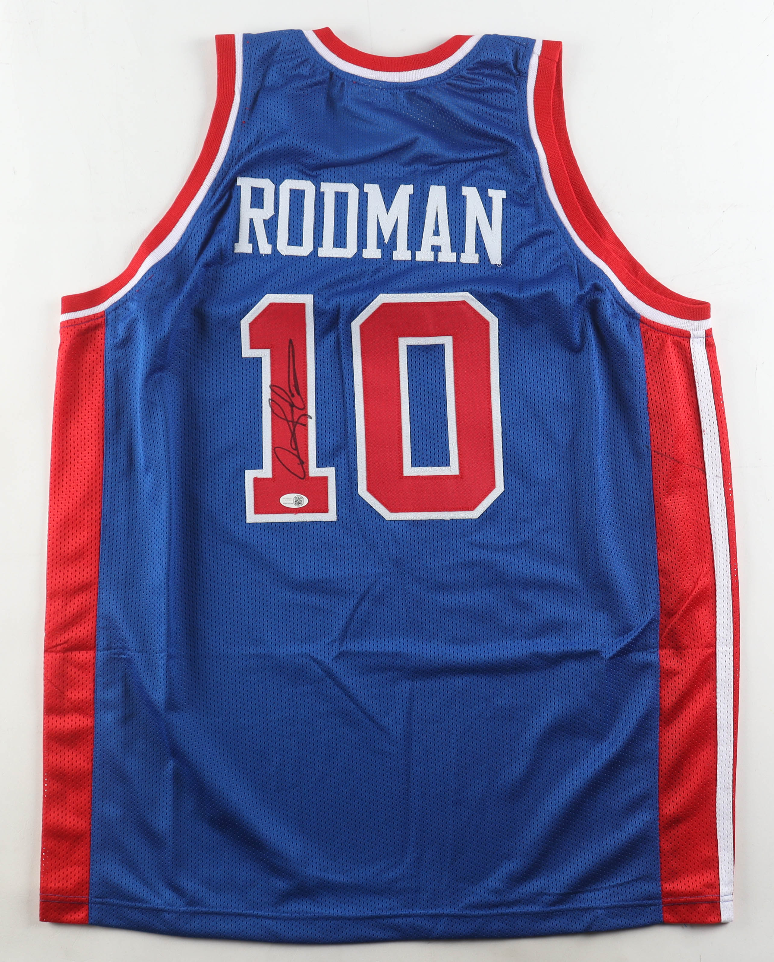 Custom jersey with everything sewn on, size XL. Has been hand-signed by Dennis Rodman (HOF).