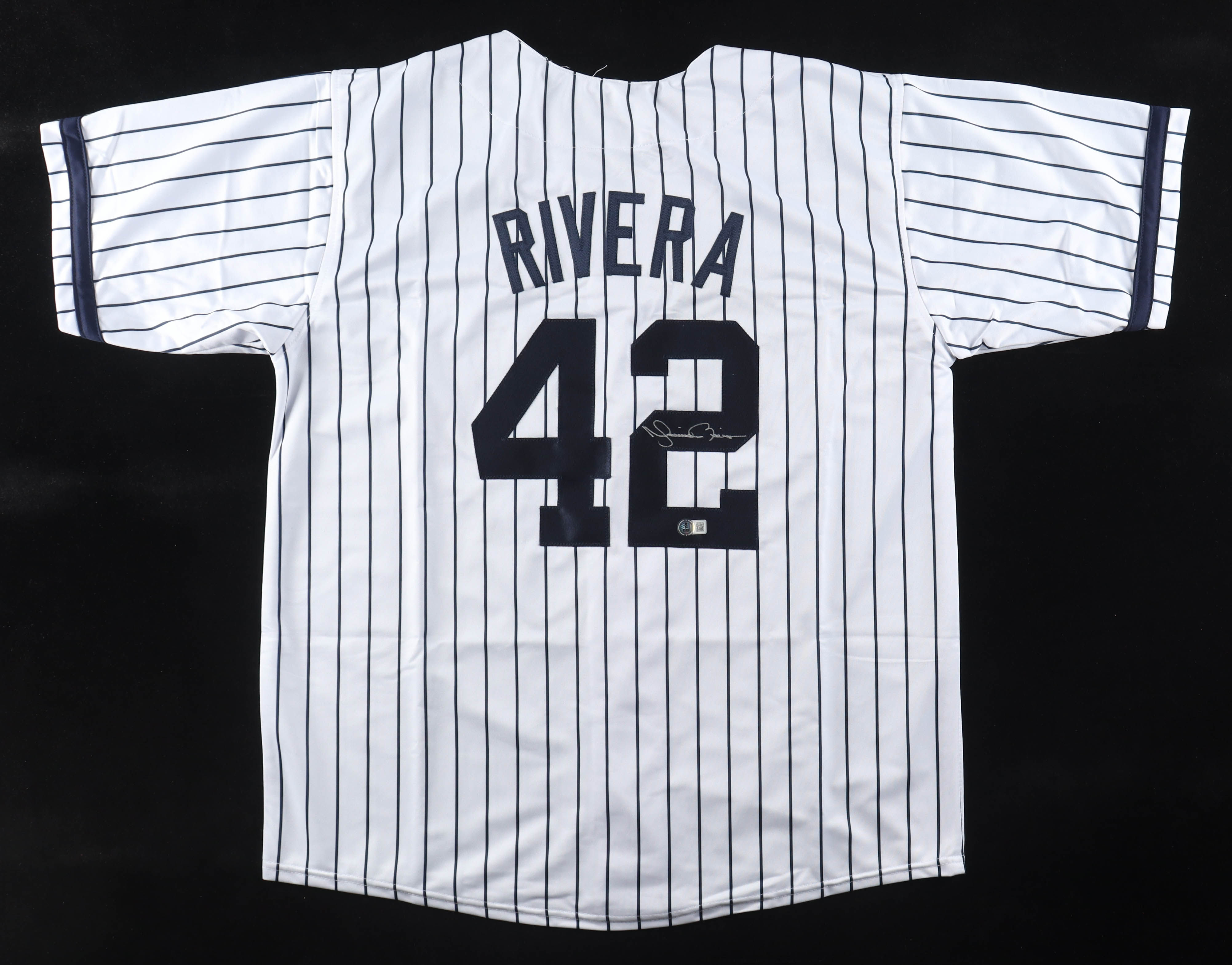 Custom jersey with everything sewn on, size XL. Hand-signed by Mariano Rivera (New York Yankees, HOF).