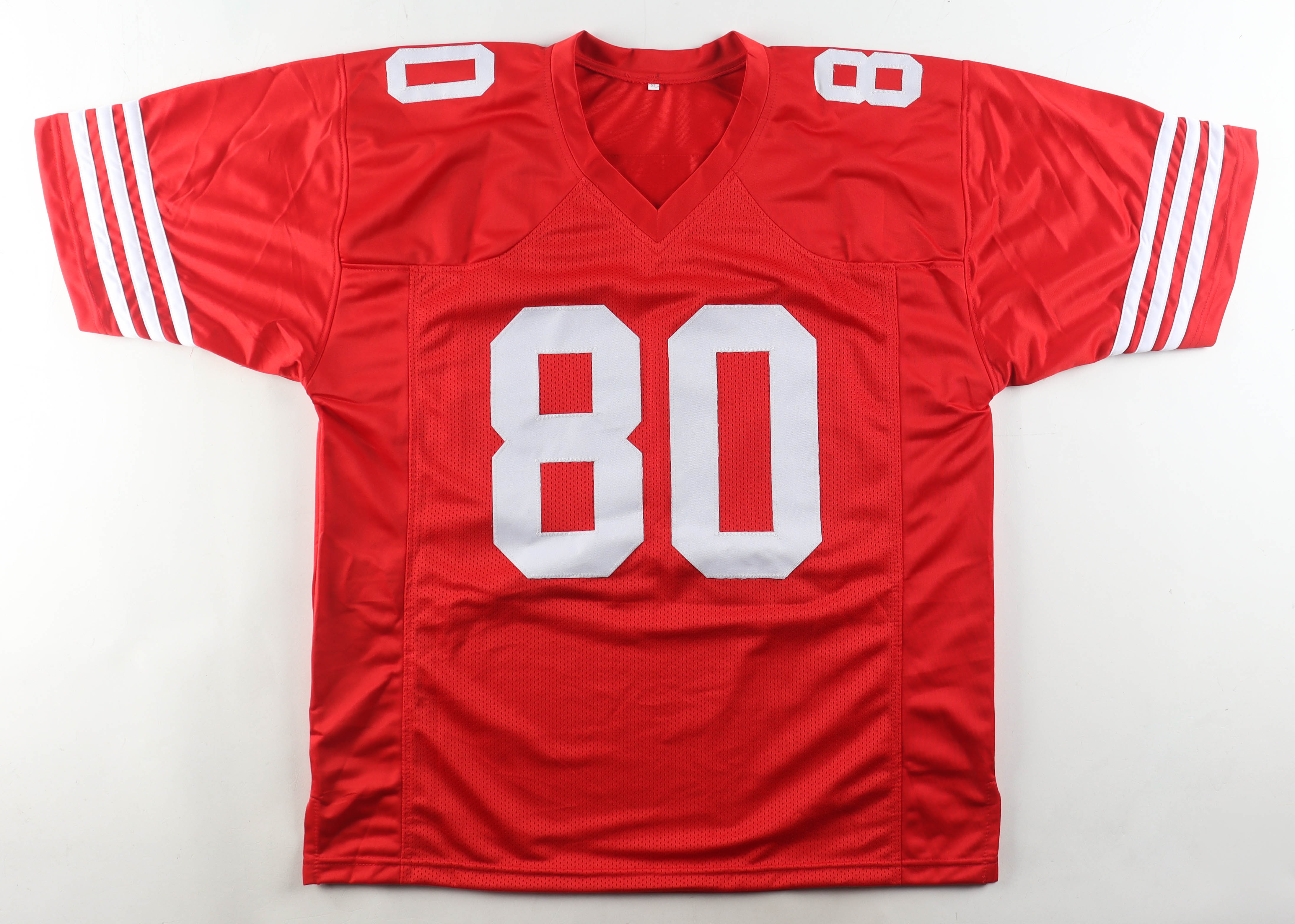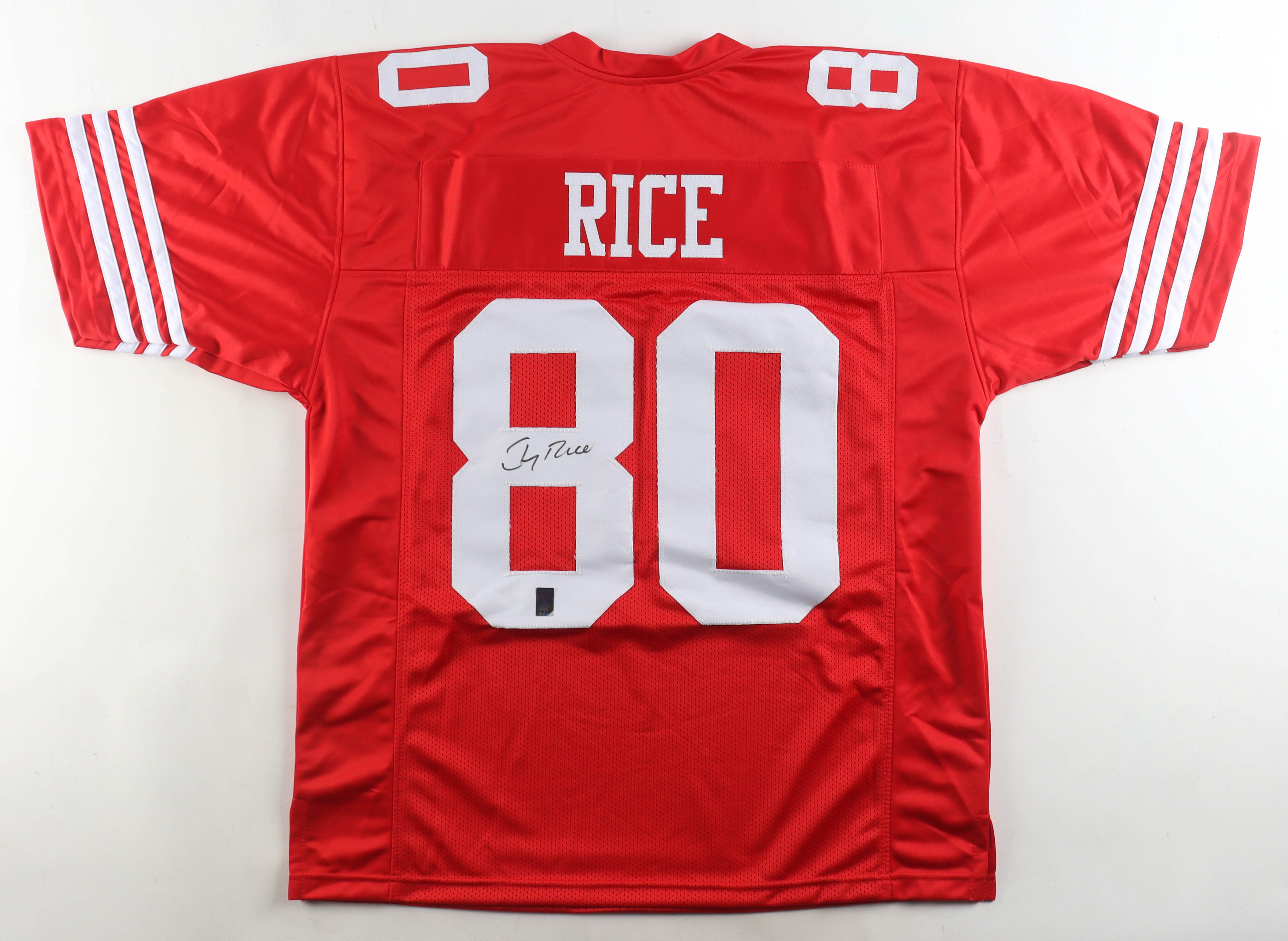 Custom jersey with everything sewn on, size XL. Hand-signed by Jerry Rice (HOF).