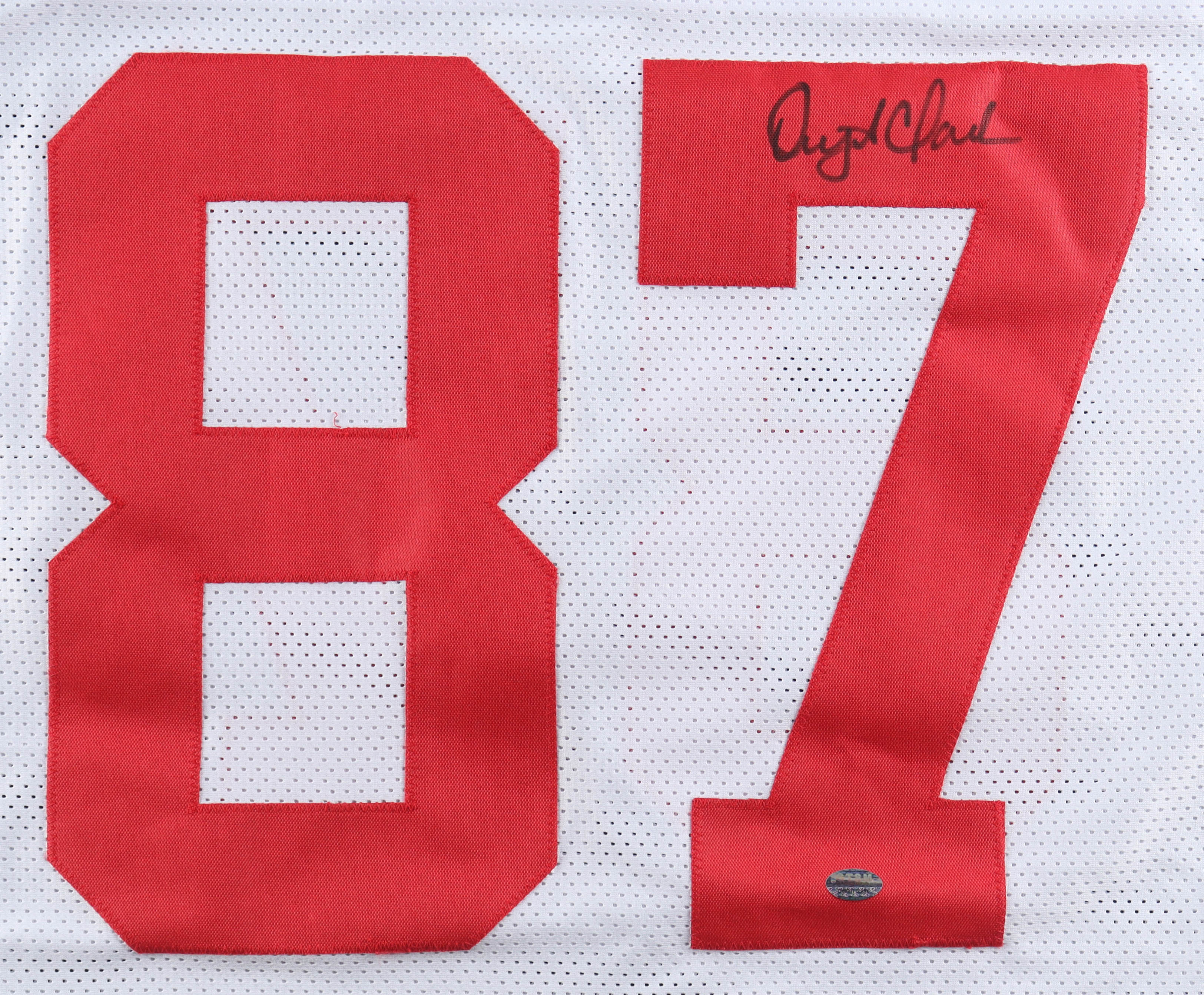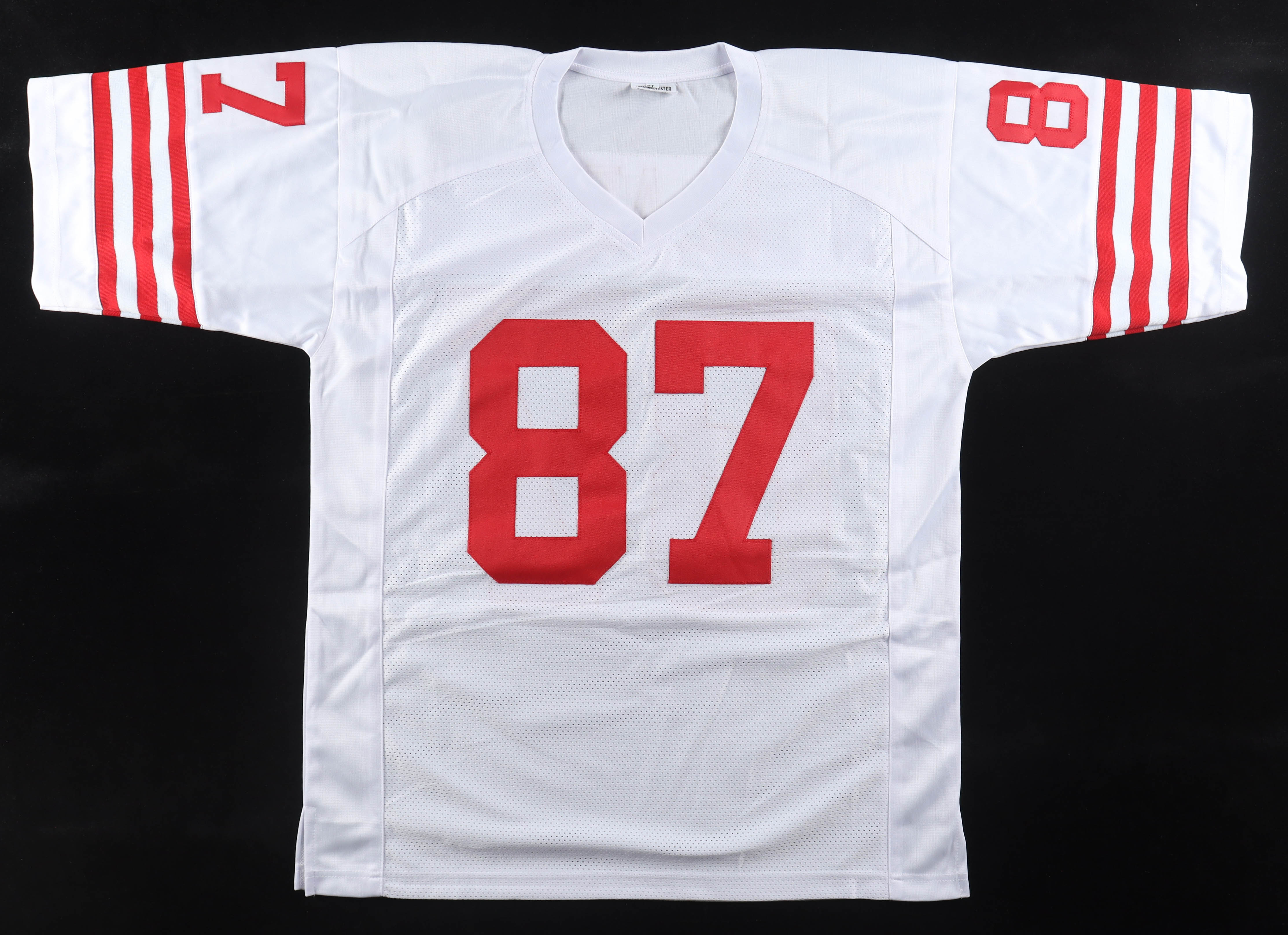 Custom jersey with everything sewn on, size XL. Hand-signed by Dwight Clark (D. 2018).
