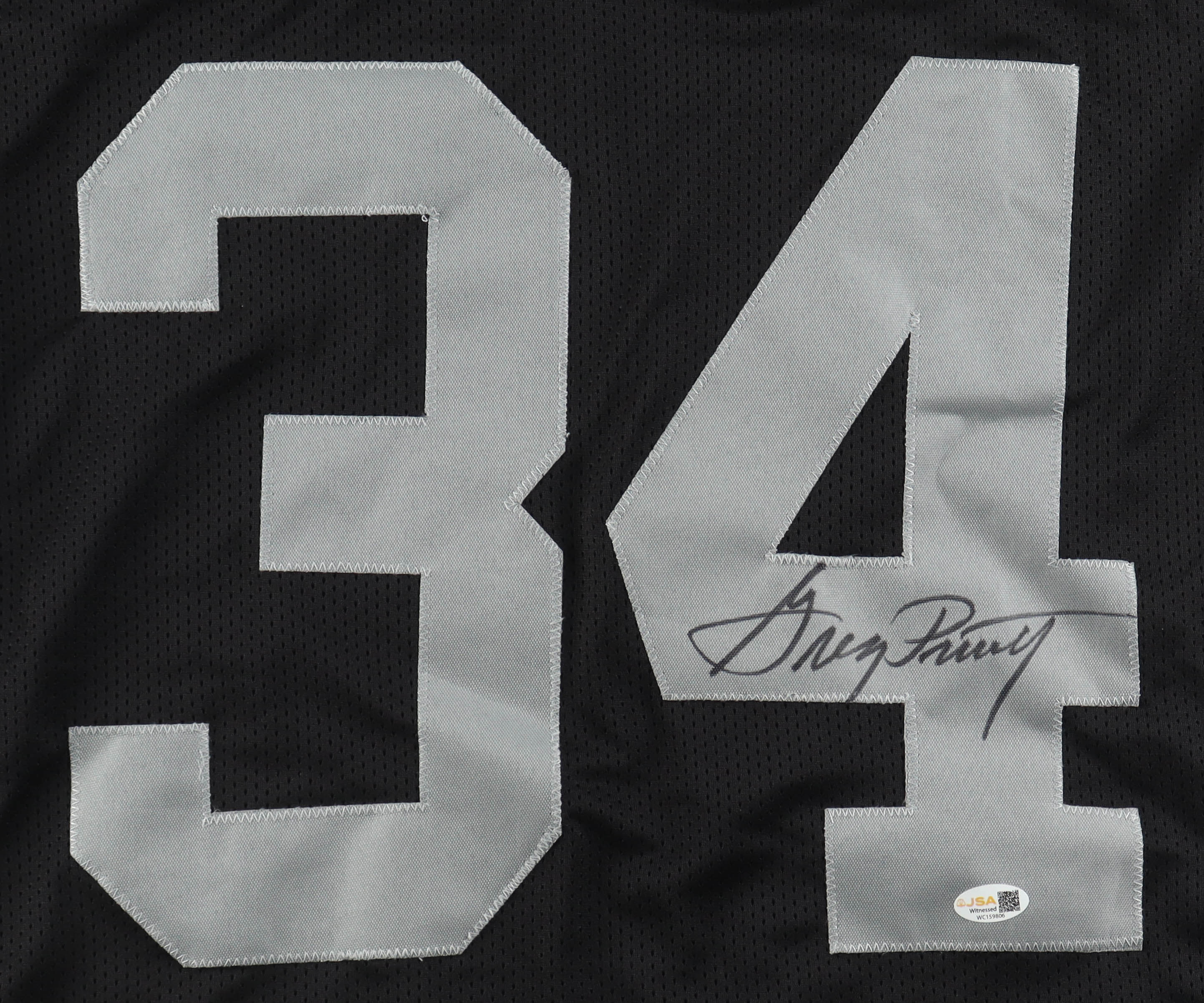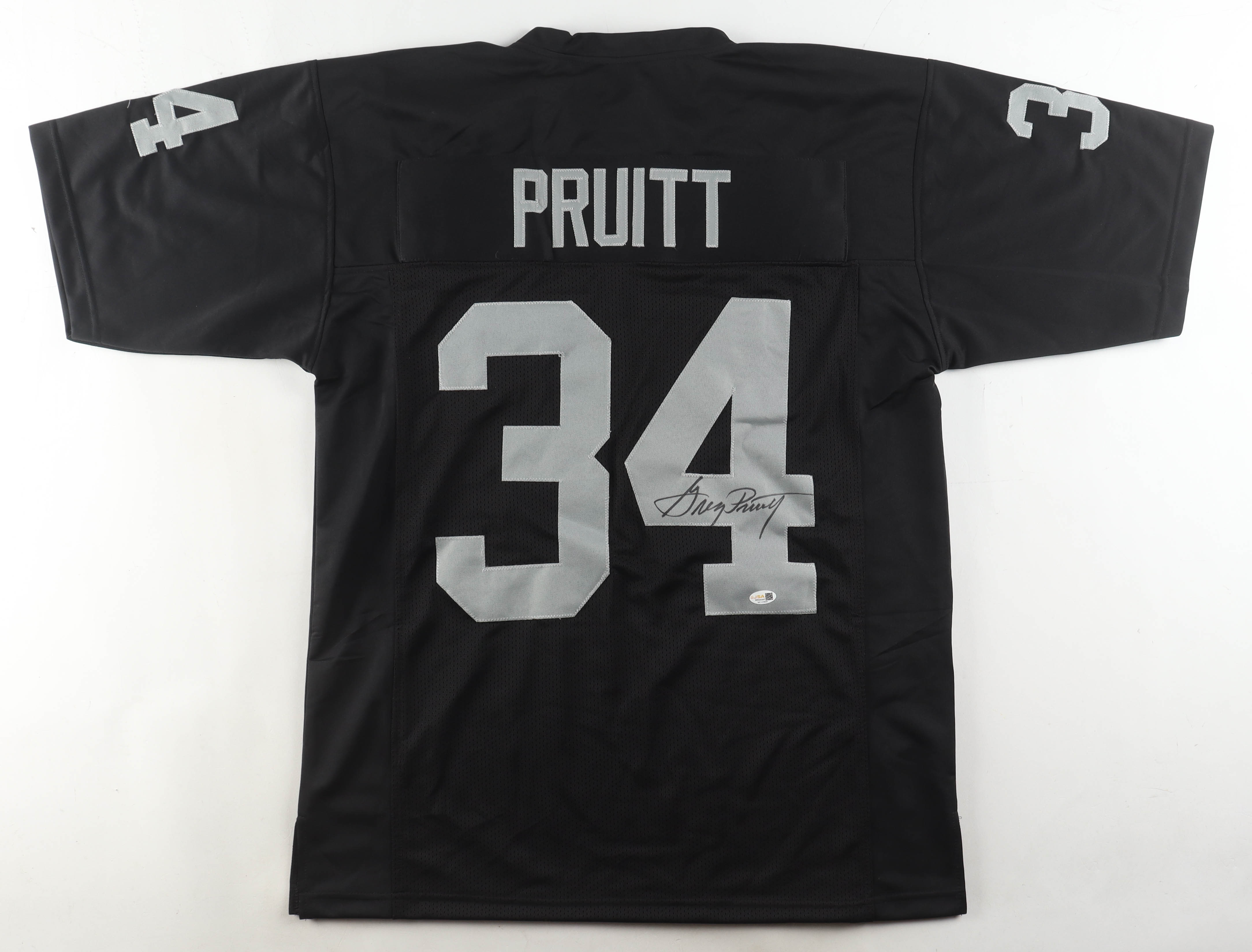 Custom jersey with everything sewn on, size XL. Hand-signed by Greg Pruitt.