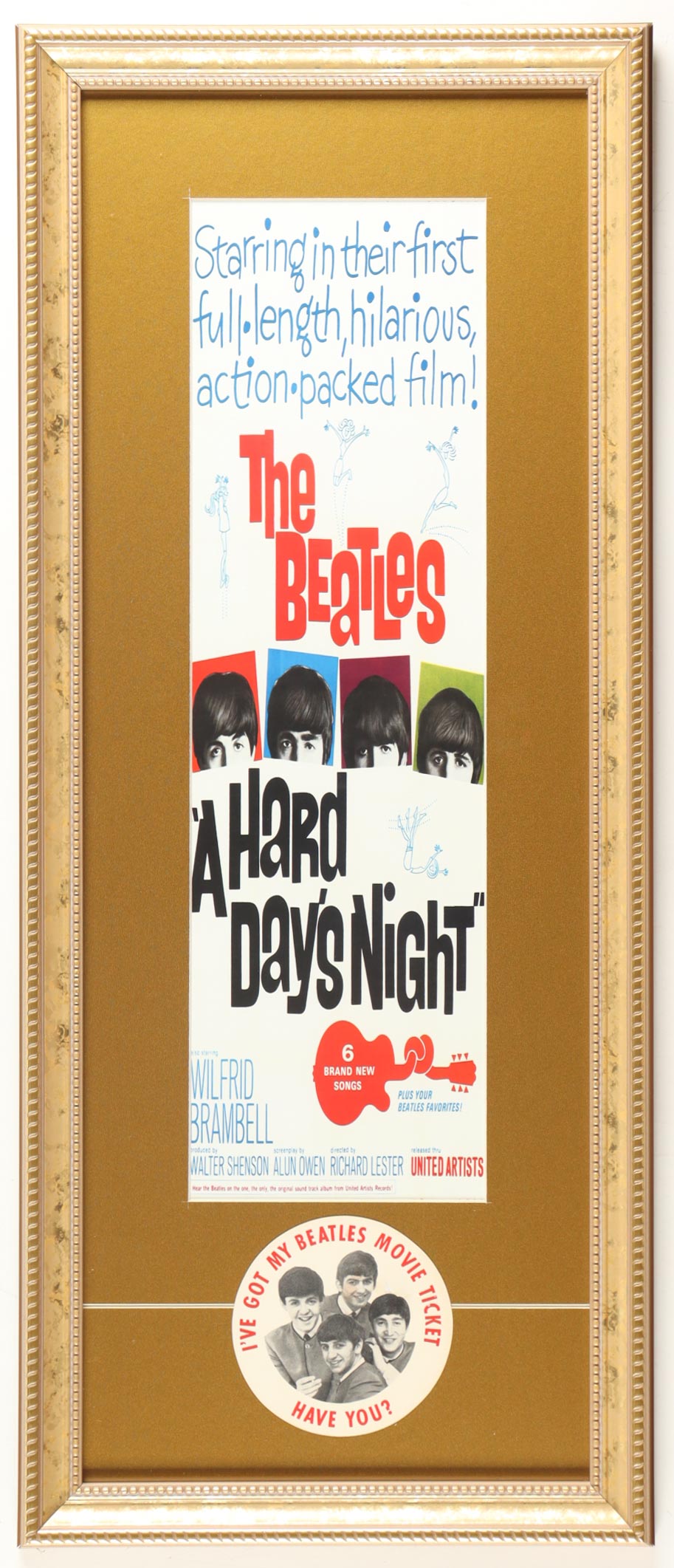 "Hard Days Night" Custom Framed "The Beatles" Movie Poster Print Display With Vintage Movie Opening Decal