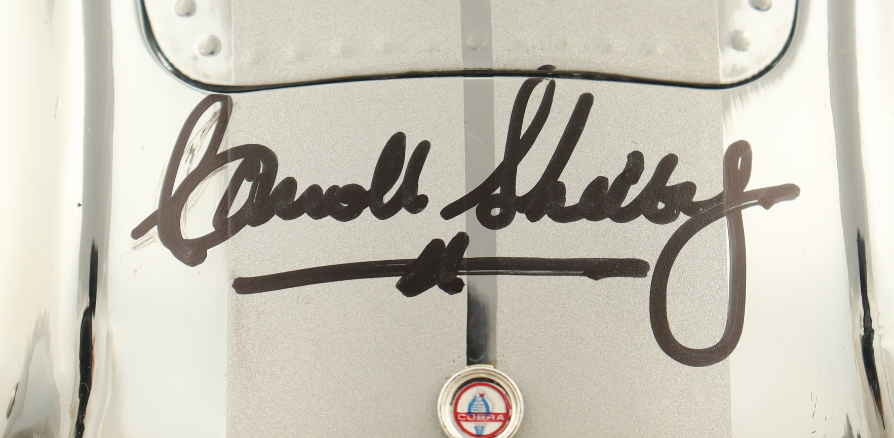 Shelby Collectibles premium die-cast car has been hand-signed on the hood by Carroll Shelby (D. 2012). The 1965 Shelby Cobra 427 S/C is a rare piece for any collector to own! Please note, the original packaging is included.