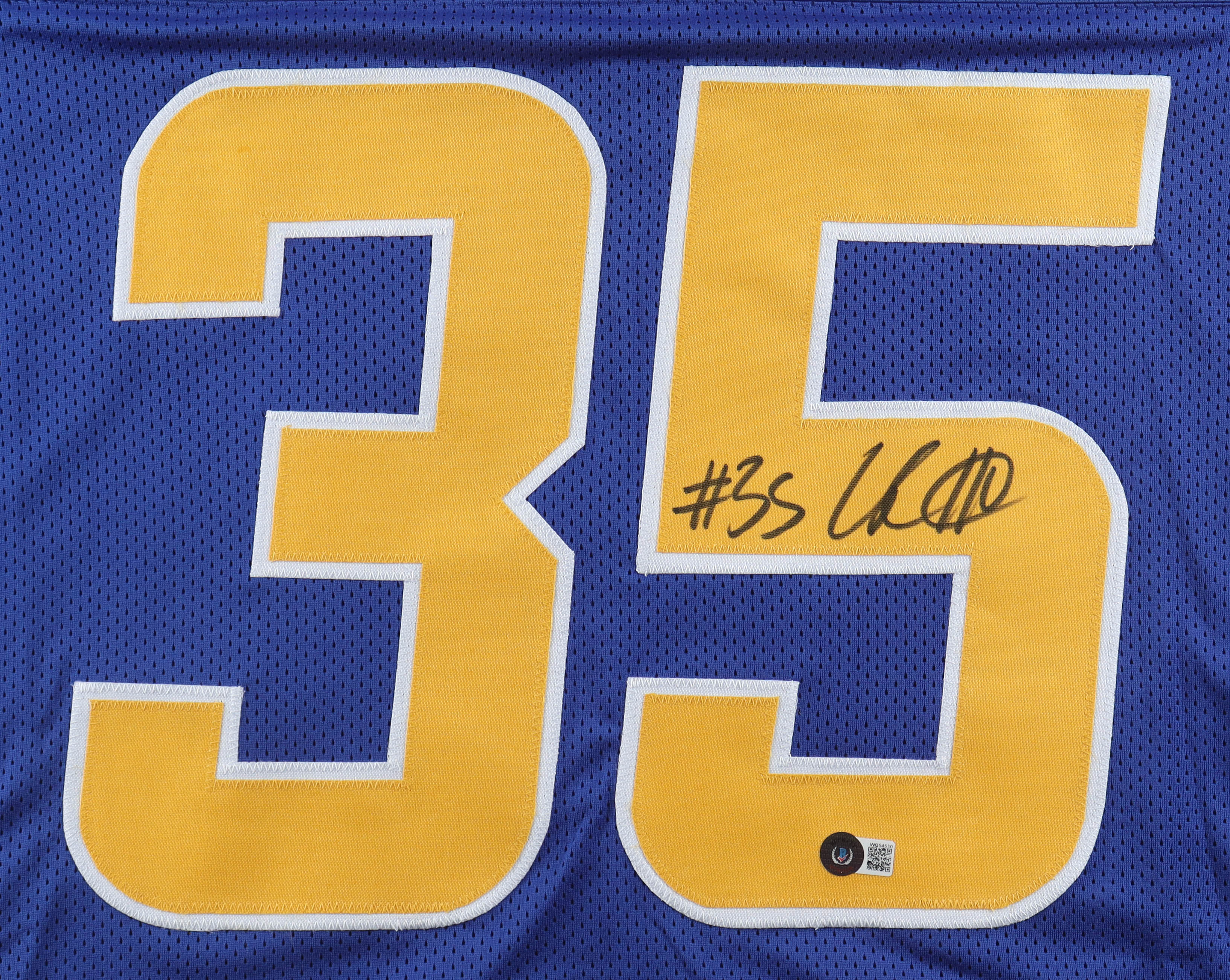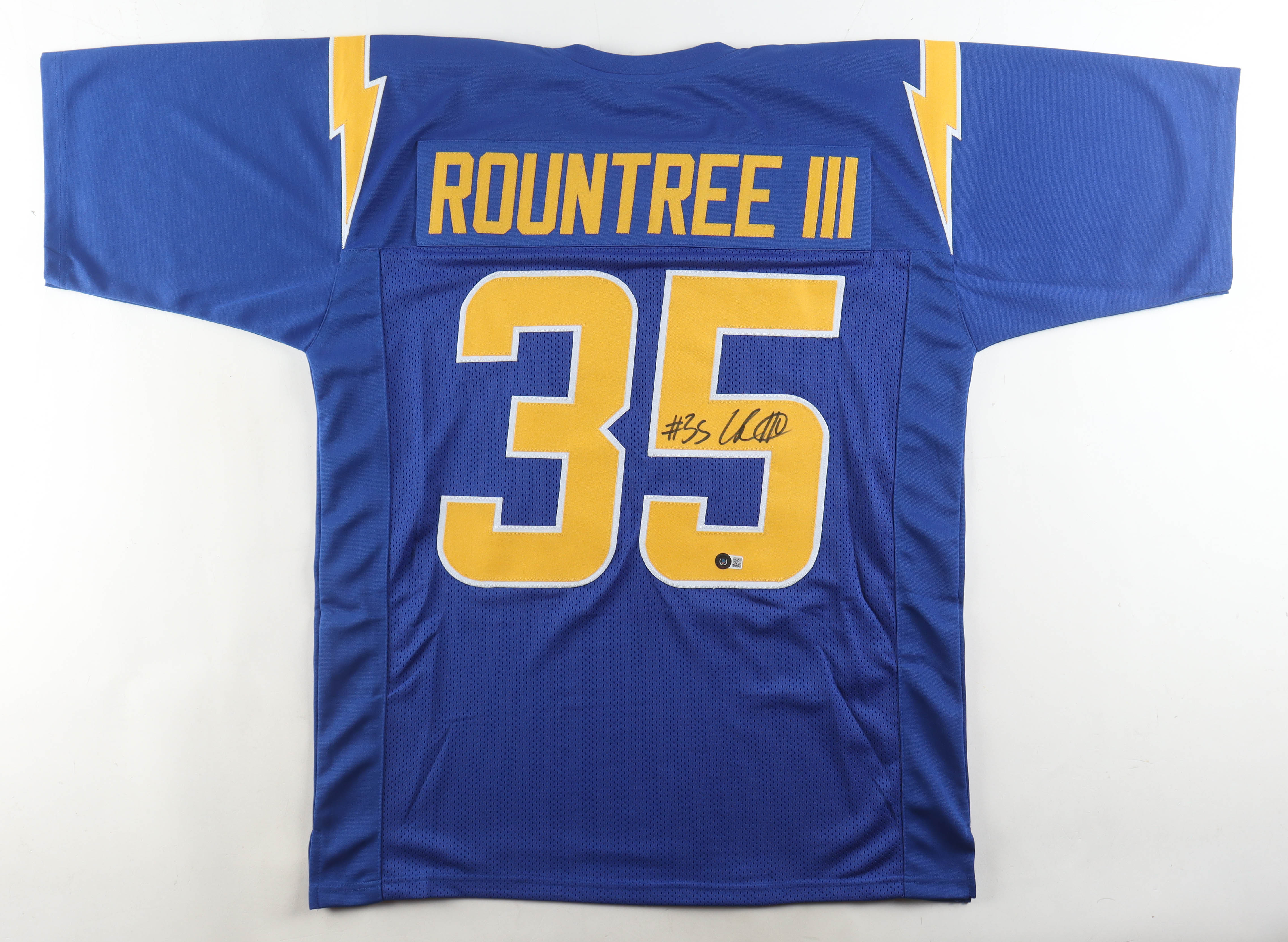 Custom jersey with everything sewn on, size XL. Hand-signed by Larry Rountree III.