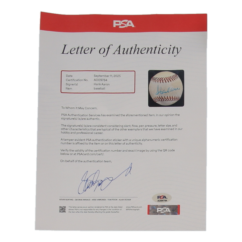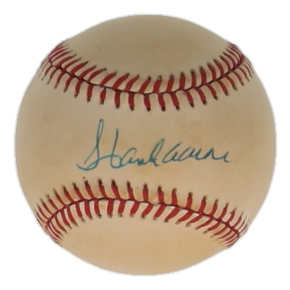 Rawlings Official National League baseball. Hand-signed by Hank Aaron (Atlanta Braves, HOF).