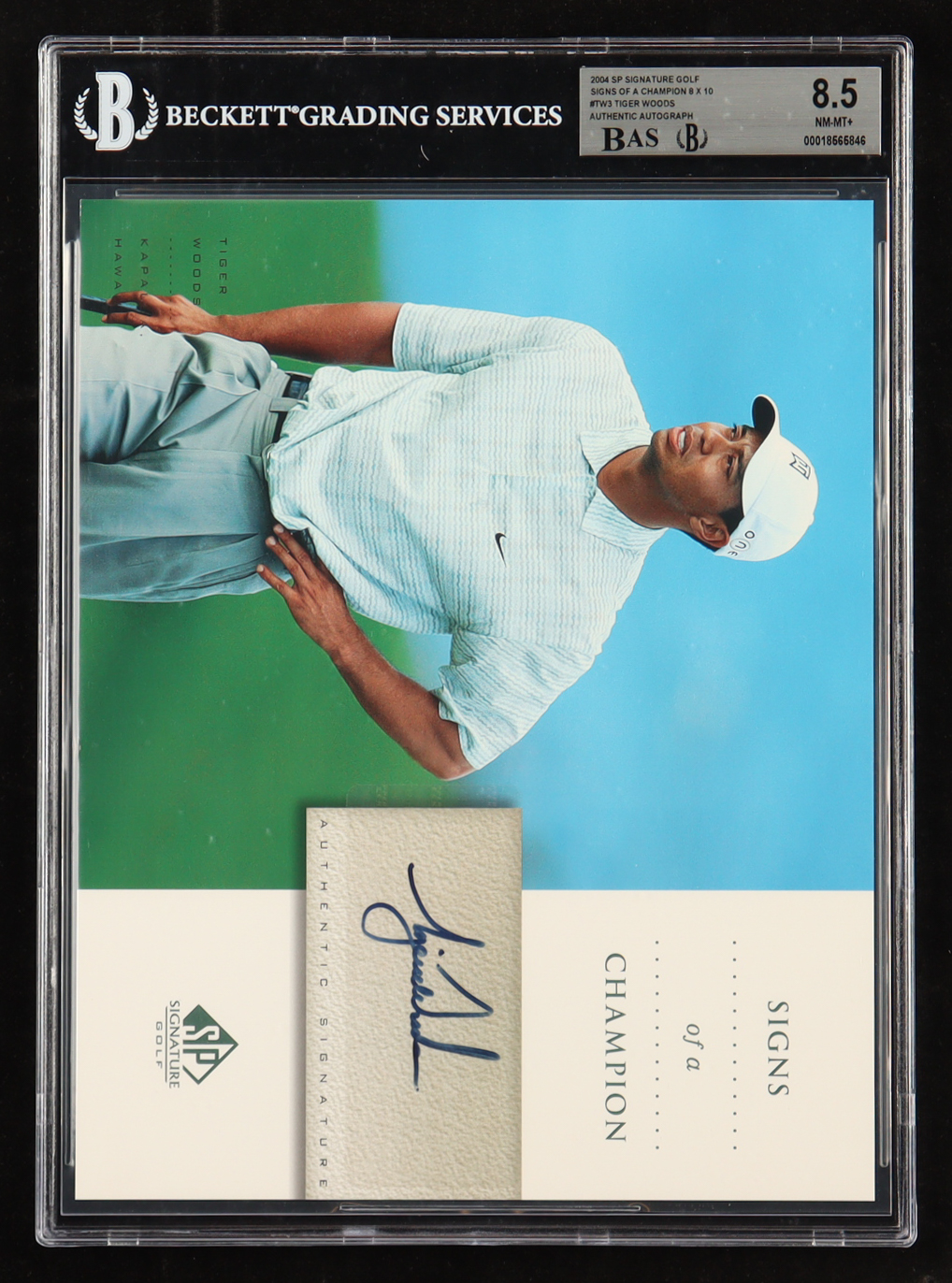 Tiger Woods 2004 Upper Deck SP Signs of a Champion Signatures Jumbo 8x10 Card (BGS 8.5)