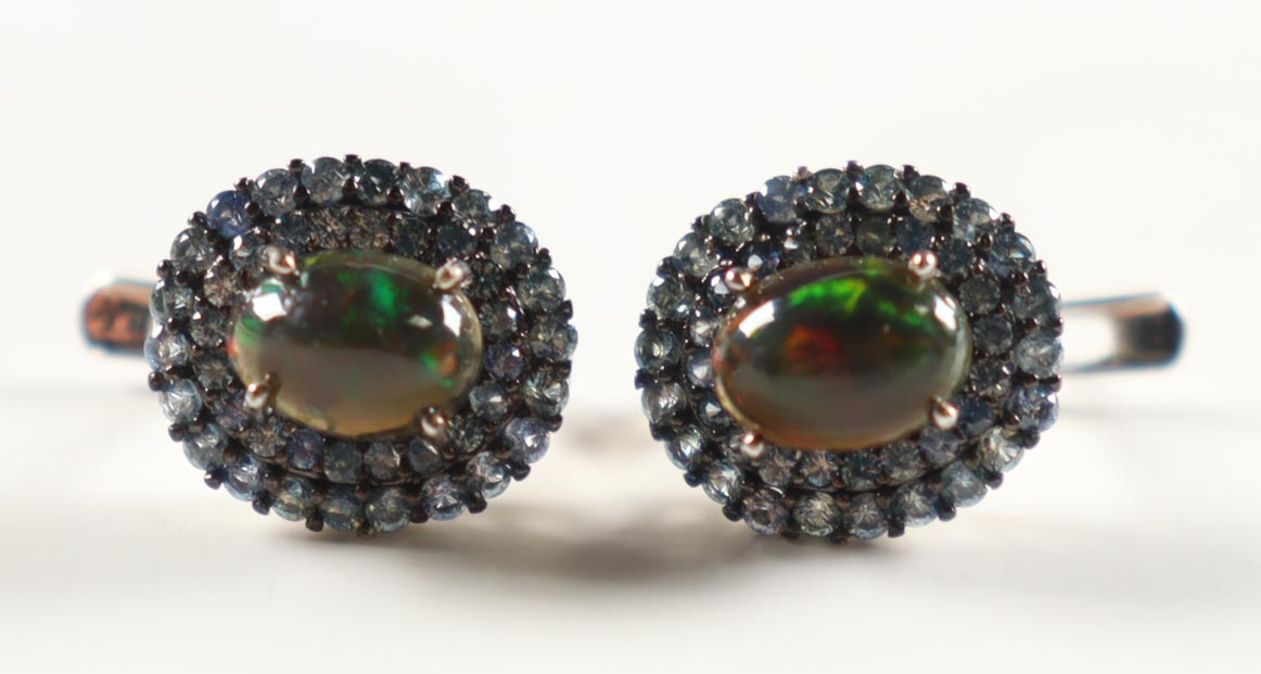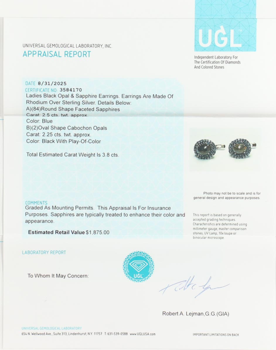 New 3.8 CTW Pair of Black Opal & Sapphire Earrings | Estimated Retail Value: $1,875 (UGL)