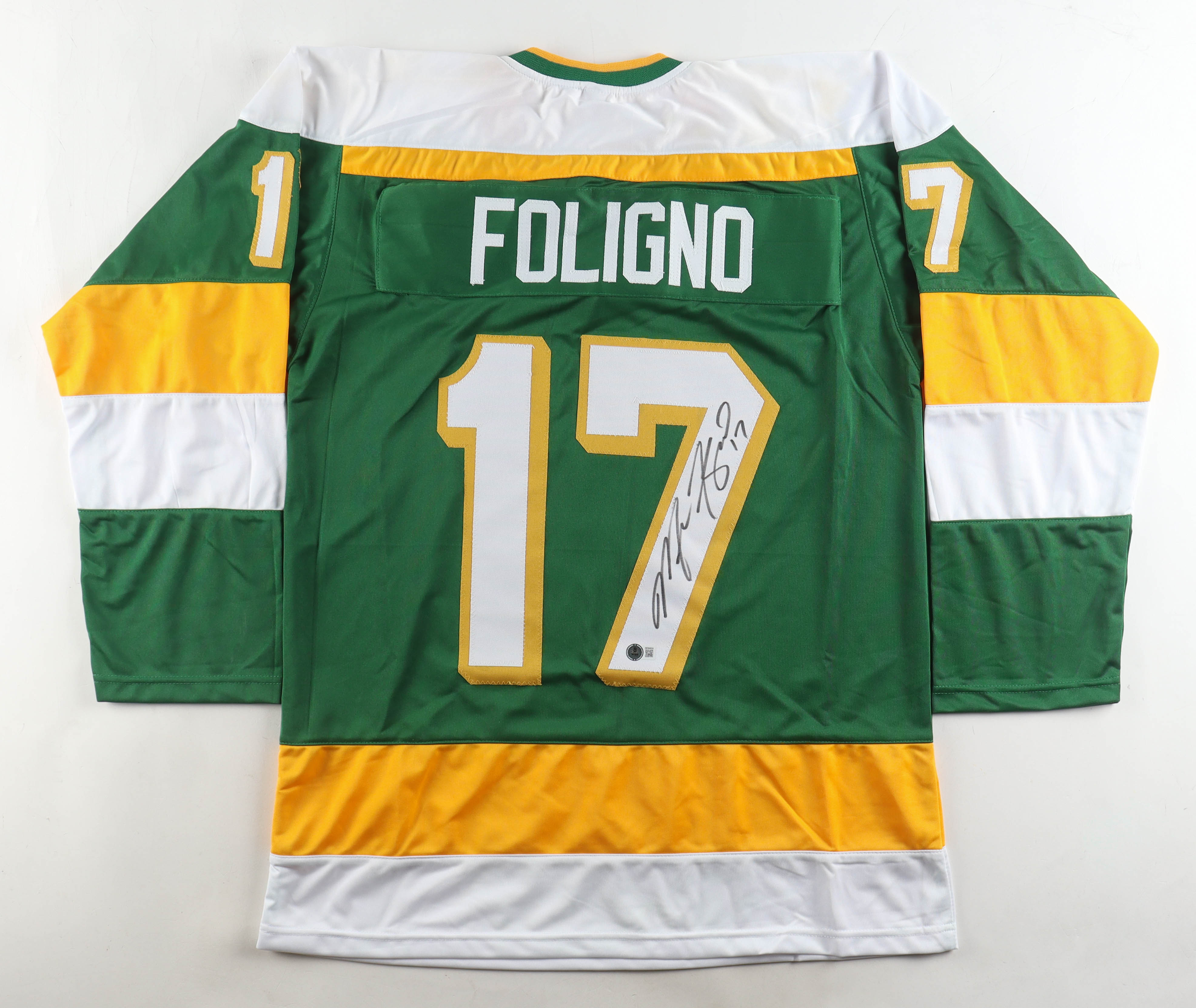 Custom jersey with everything sewn on, size XL. Hand-signed by Marcus Foligno (Minnesota Wild).