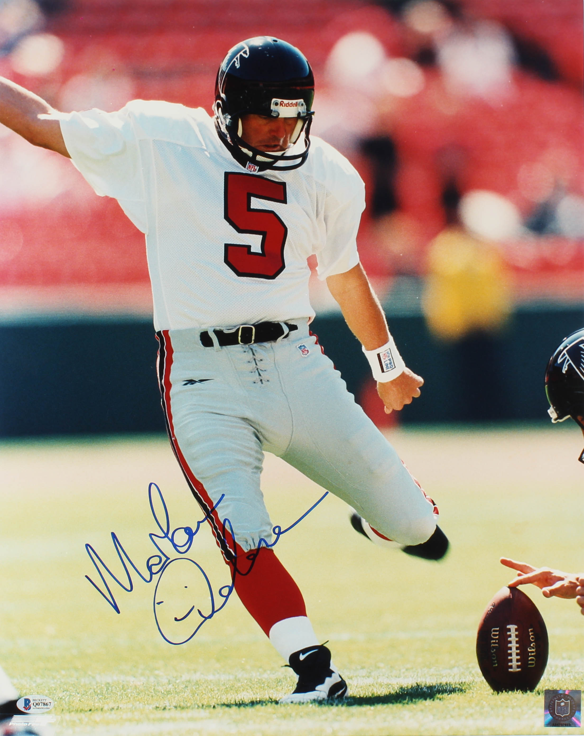 Photo measures 16" x 20" in size and has been hand-signed by Morten Andersen (Atlanta Falcons, HOF).