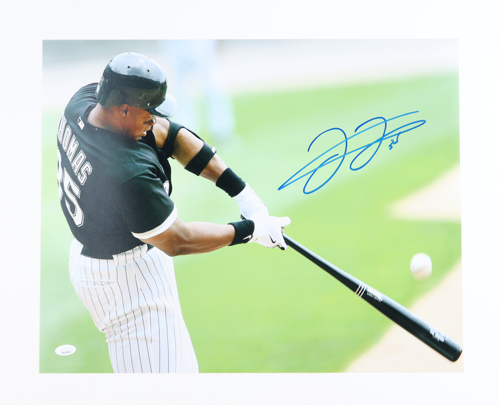 Photo measures 16" x 20" in size and has been hand-signed by Frank Thomas (Chicago White Sox, HOF).