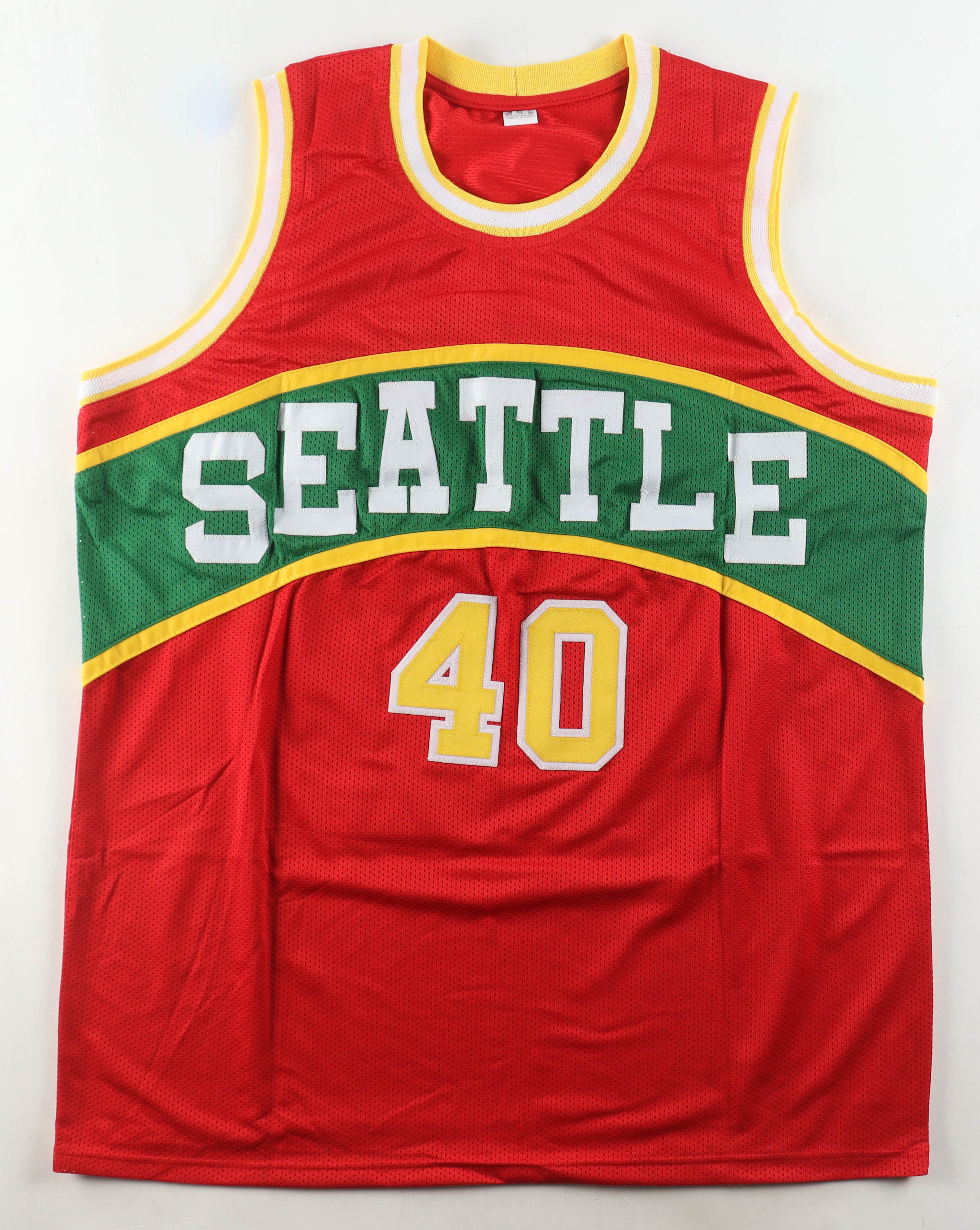 Custom jersey with everything sewn on, size XL. Hand-signed by Shawn Kemp.