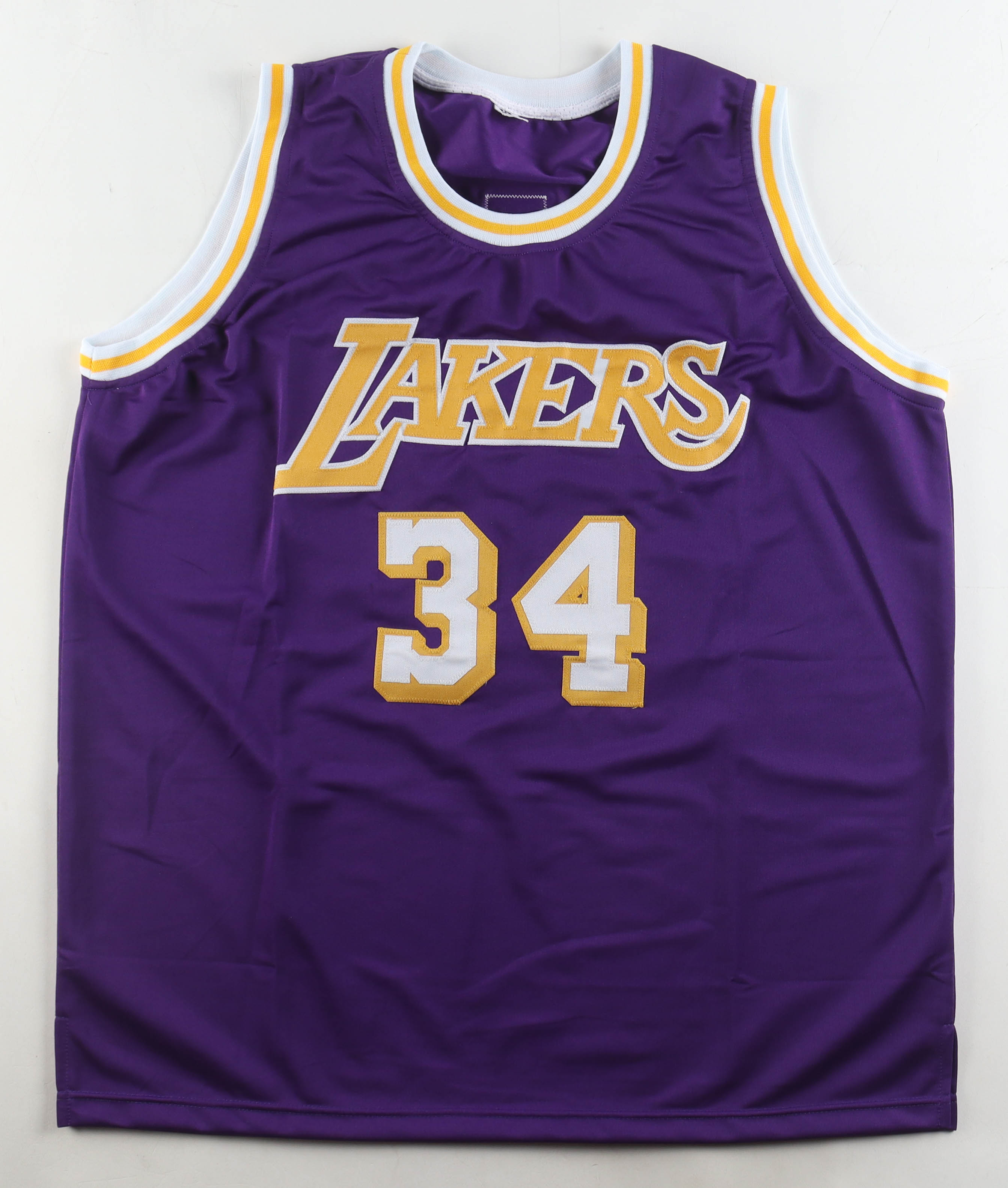 Custom jersey with everything sewn on, size XL. Hand-signed by Shaquille O'Neal (Los Angeles Lakers, HOF).