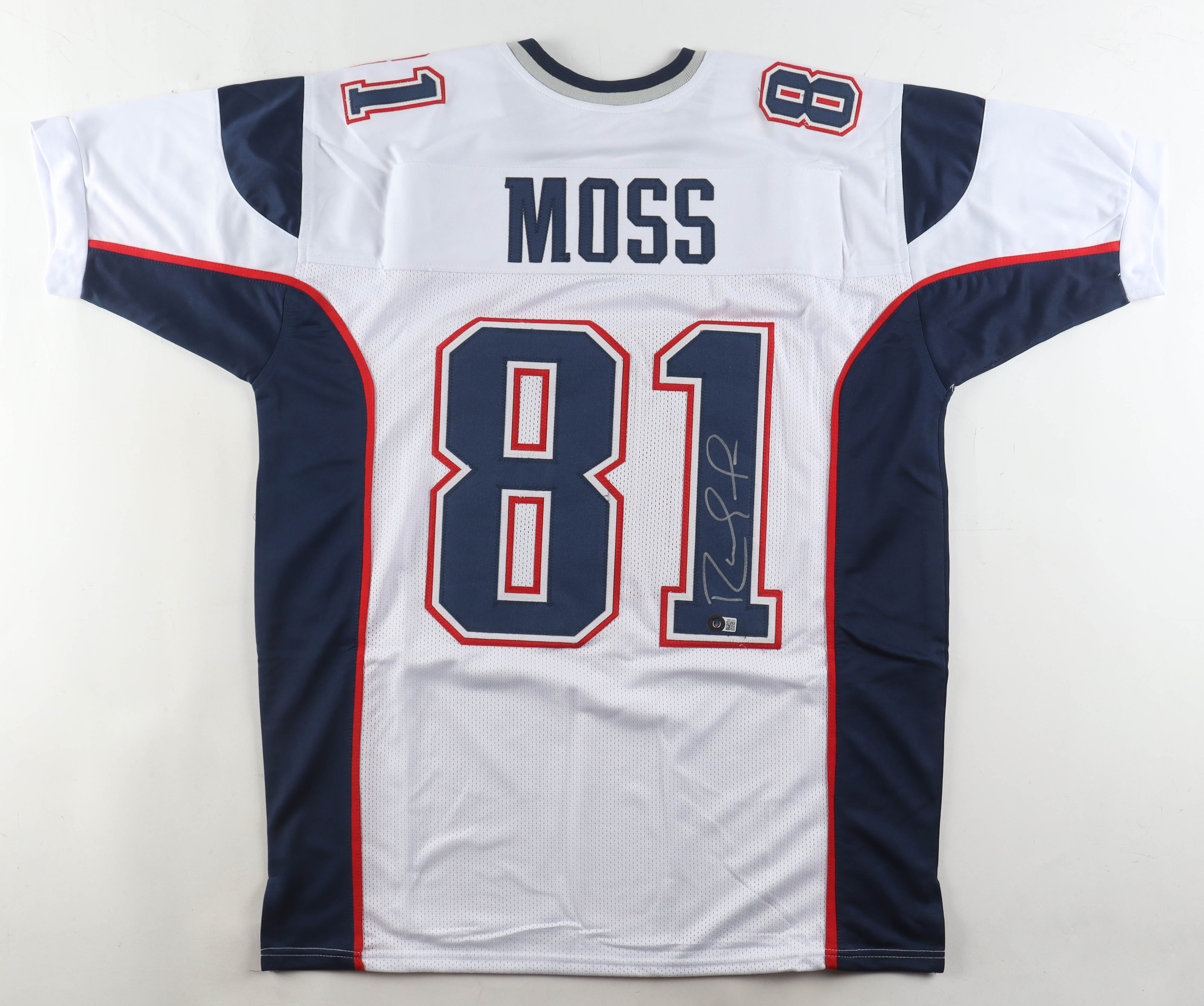 Custom jersey with everything sewn on, size XL. Hand-signed by Randy Moss (HOF).