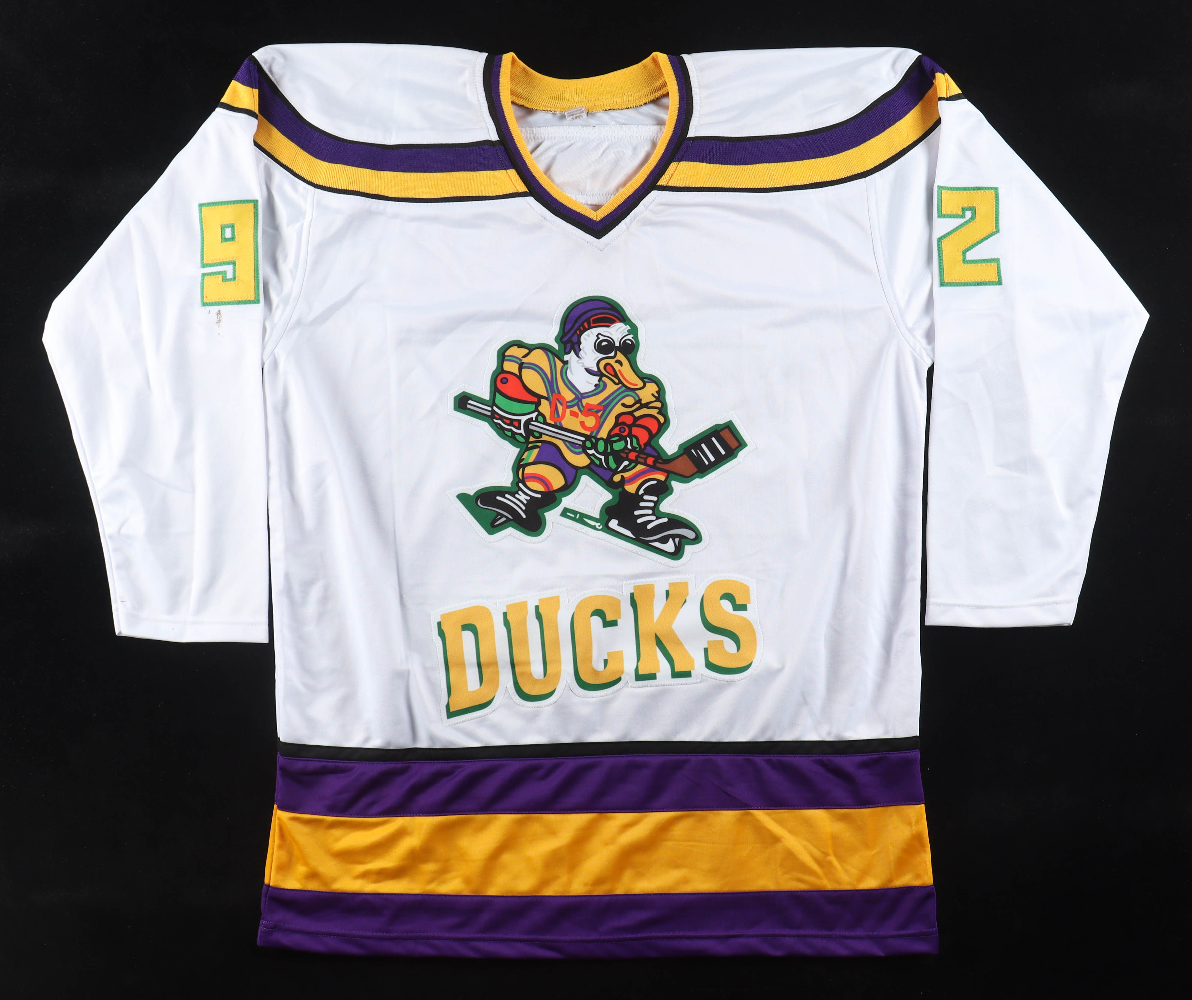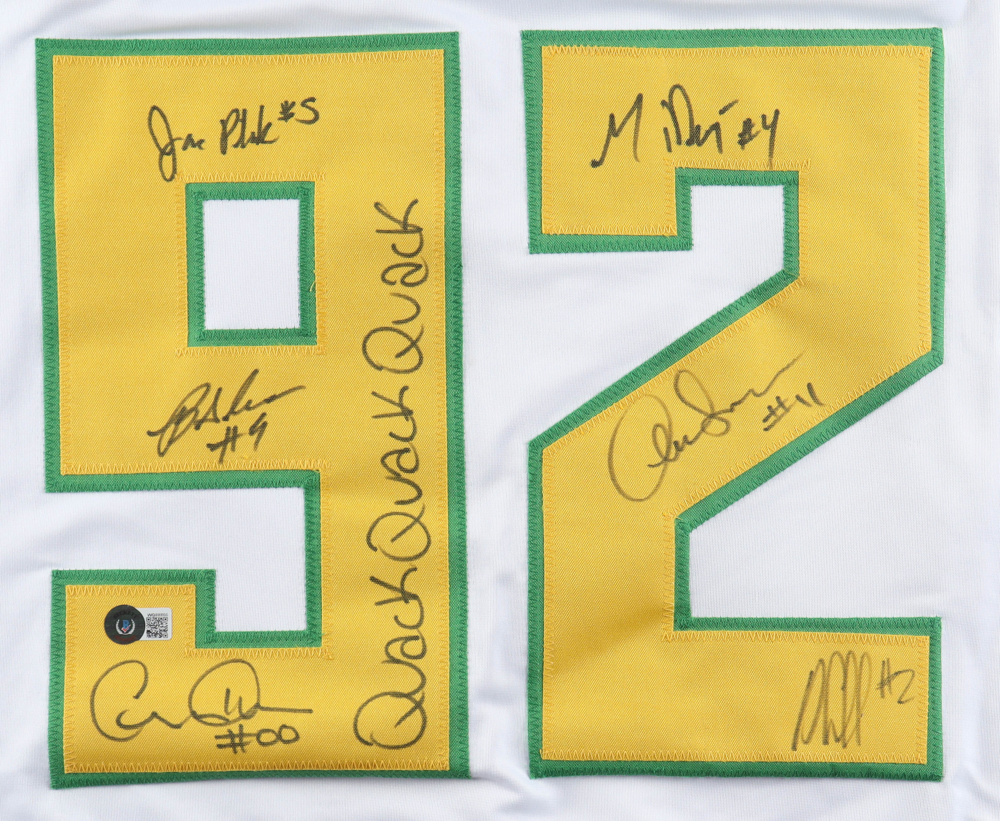 "The Mighty Ducks" Cast-Signed Jersey by (6) with Brandon Adams, Danny Tamberelli, Aaron Schwartz, Jane Plank Inscribed "Quack Quack Quack" (Beckett)