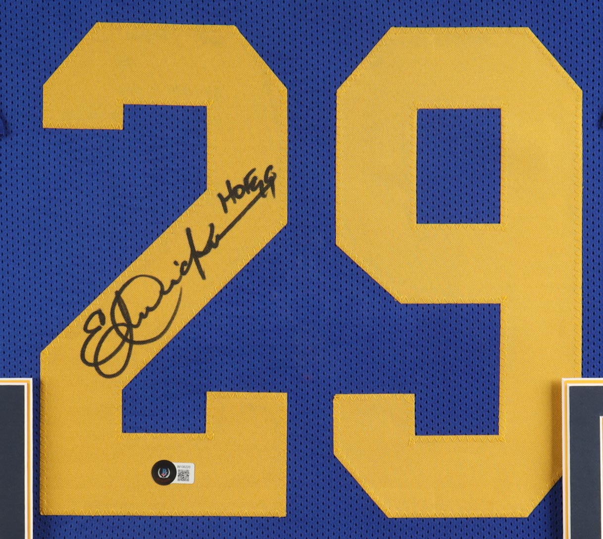 Custom frame measures 32" x 37" in size and has been hand-signed by Eric Dickerson (Los Angeles Rams, HOF)