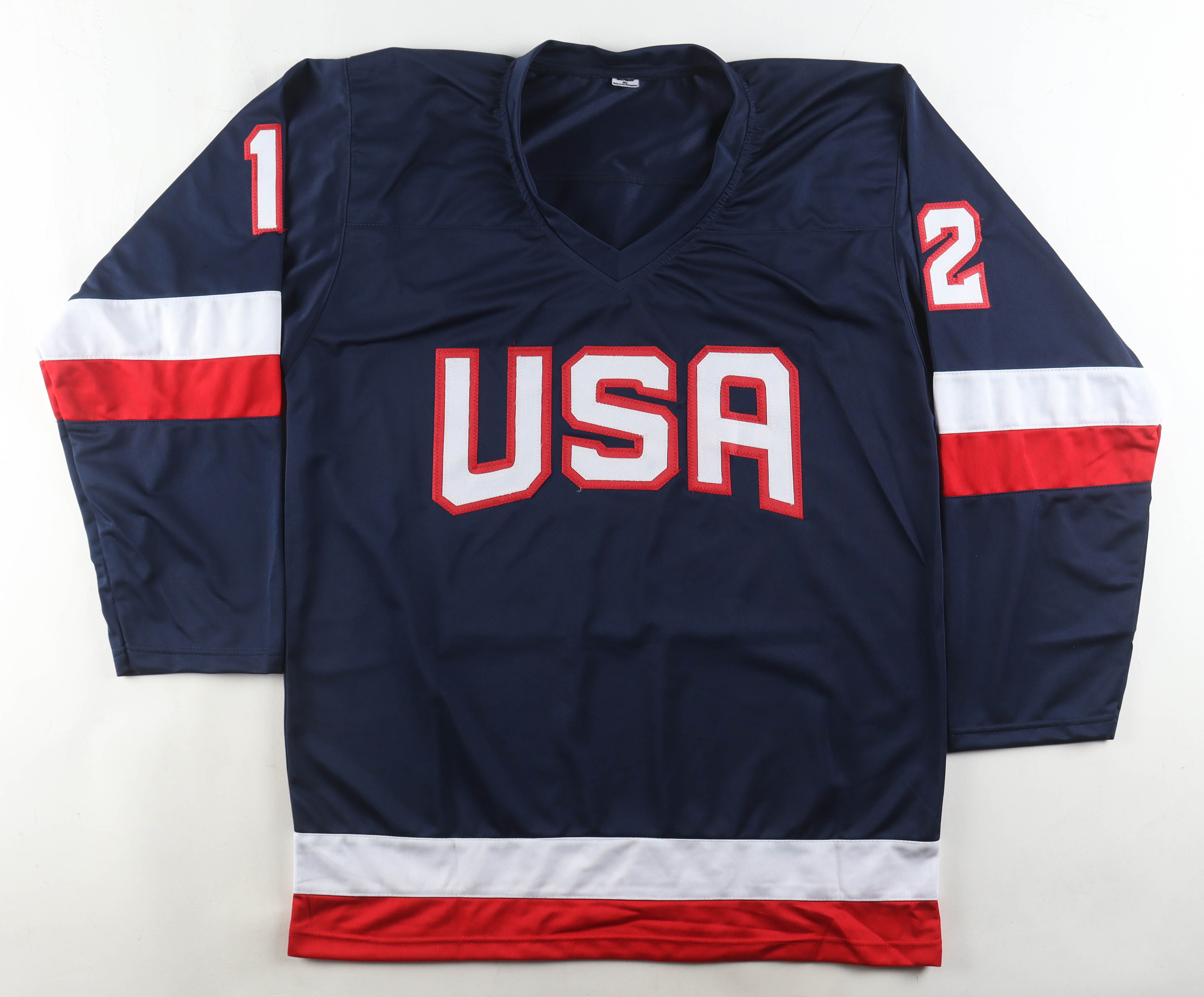 Custom jersey with everything sewn on, size XL. Hand-signed by Matt Boldy (Team USA).