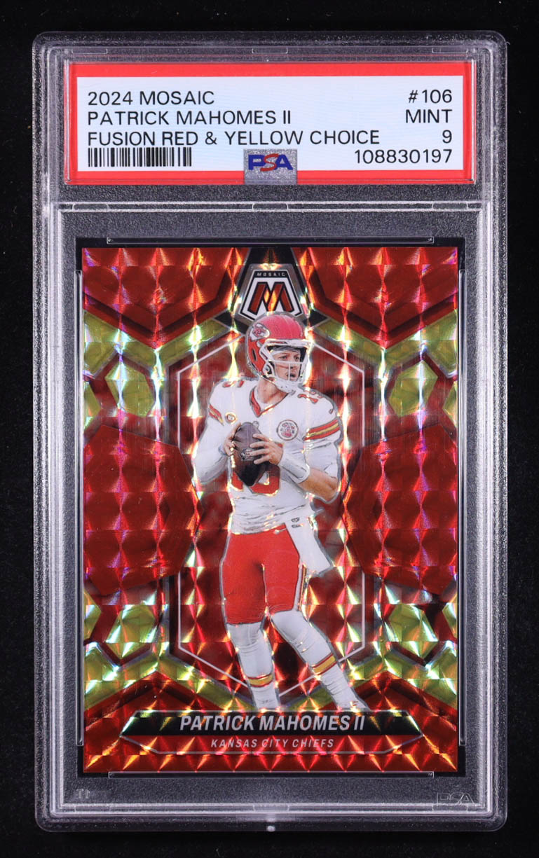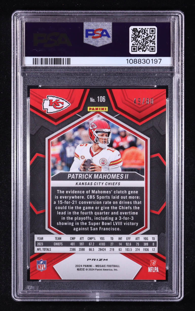 Patrick Mahomes II 2024 Panini Mosaic Mosaic Choice Fusion Red and Yellow #106 #49/80 (PSA 9)