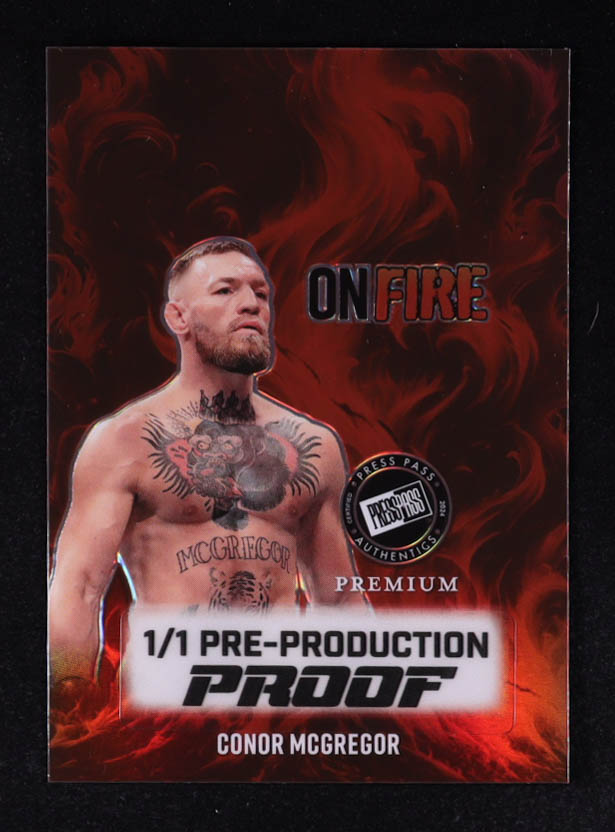 Conor McGregor 2025 Leaf Press Pass Premium On Fire Pre-Production Proof #NNO #1/1
