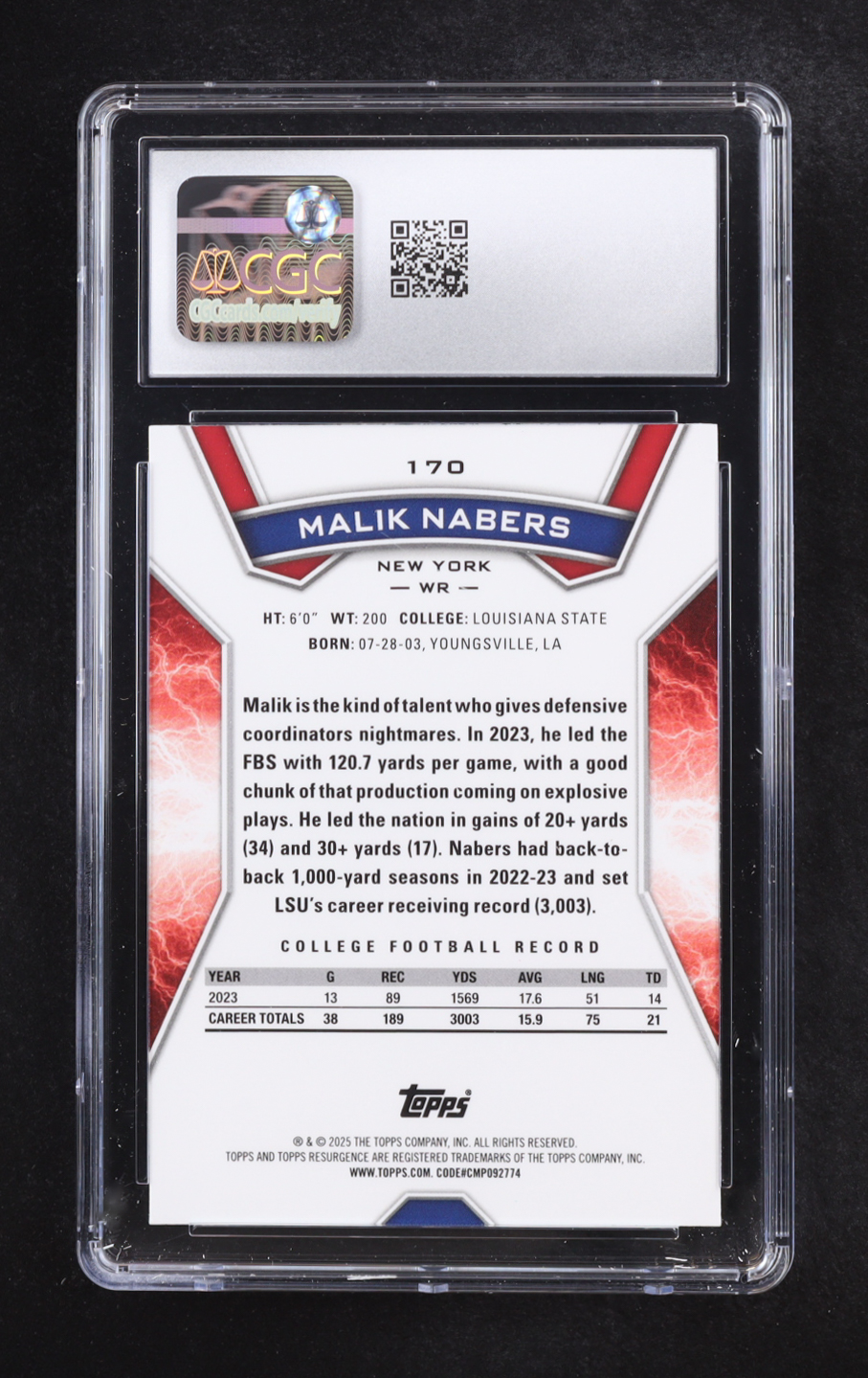 Malik Nabers 2024 Topps Resurgence Blue & Orange Spark Refractor #170 RC (CGC 9)