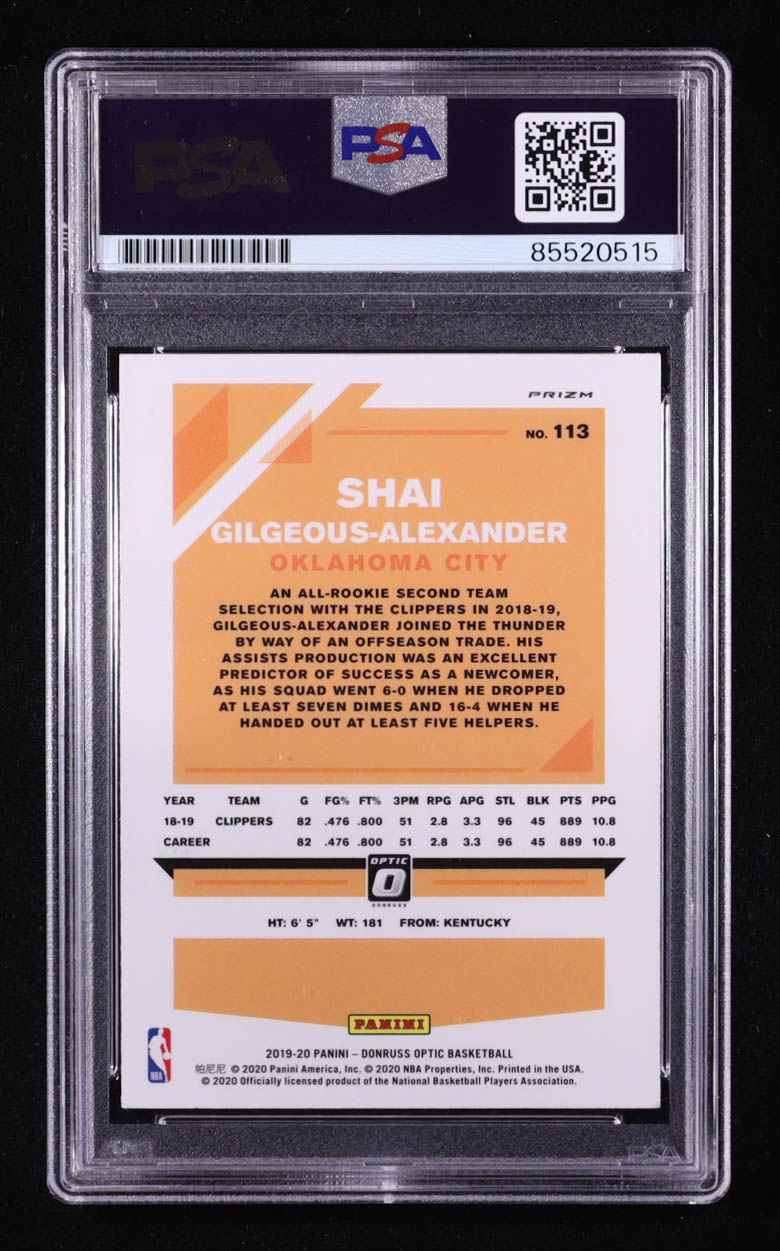 Shai Gilgeous-Alexander Signed 2019-20 Donruss Optic Holo #113 (PSA | Auto Grade PSA Authentic)