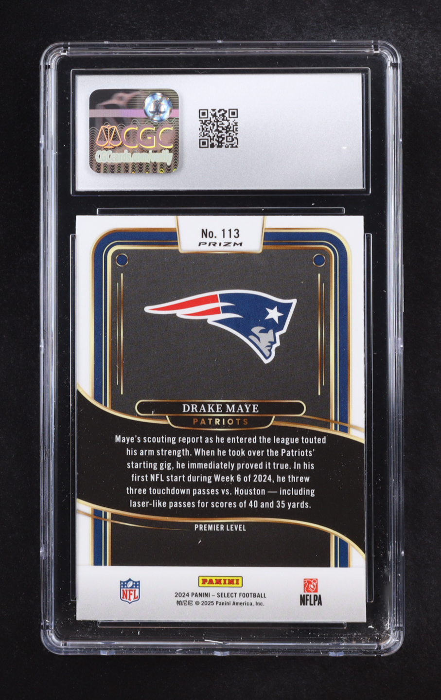 Drake Maye 2024 Panini Select Red & Blue Shock #113 RC (CGC 9)