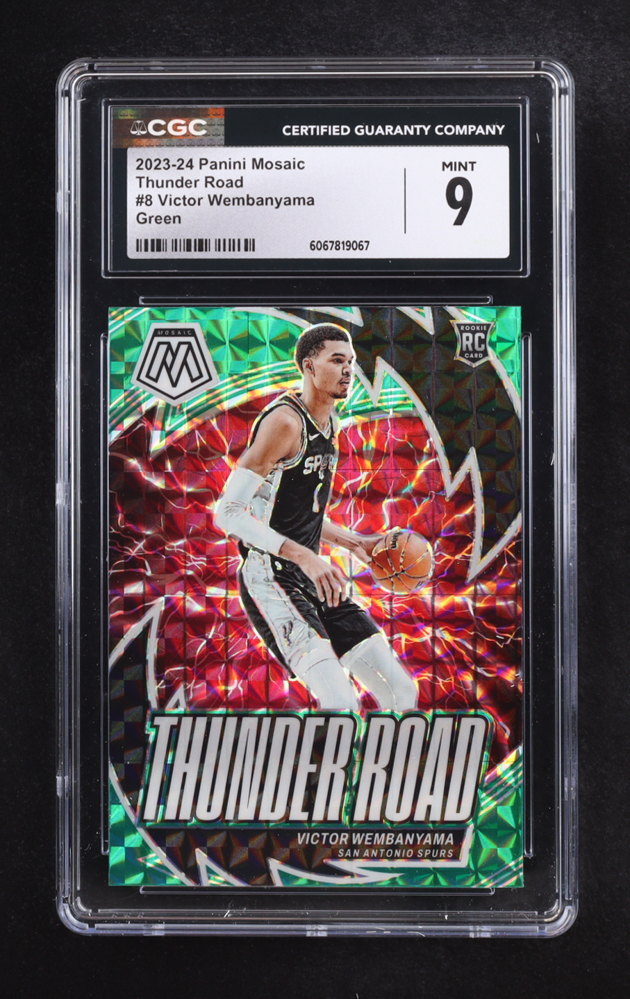 Victor Wembanyama 2023-24 Panini Mosaic Thunder Road Green Prizm #8 RC (CGC 9)