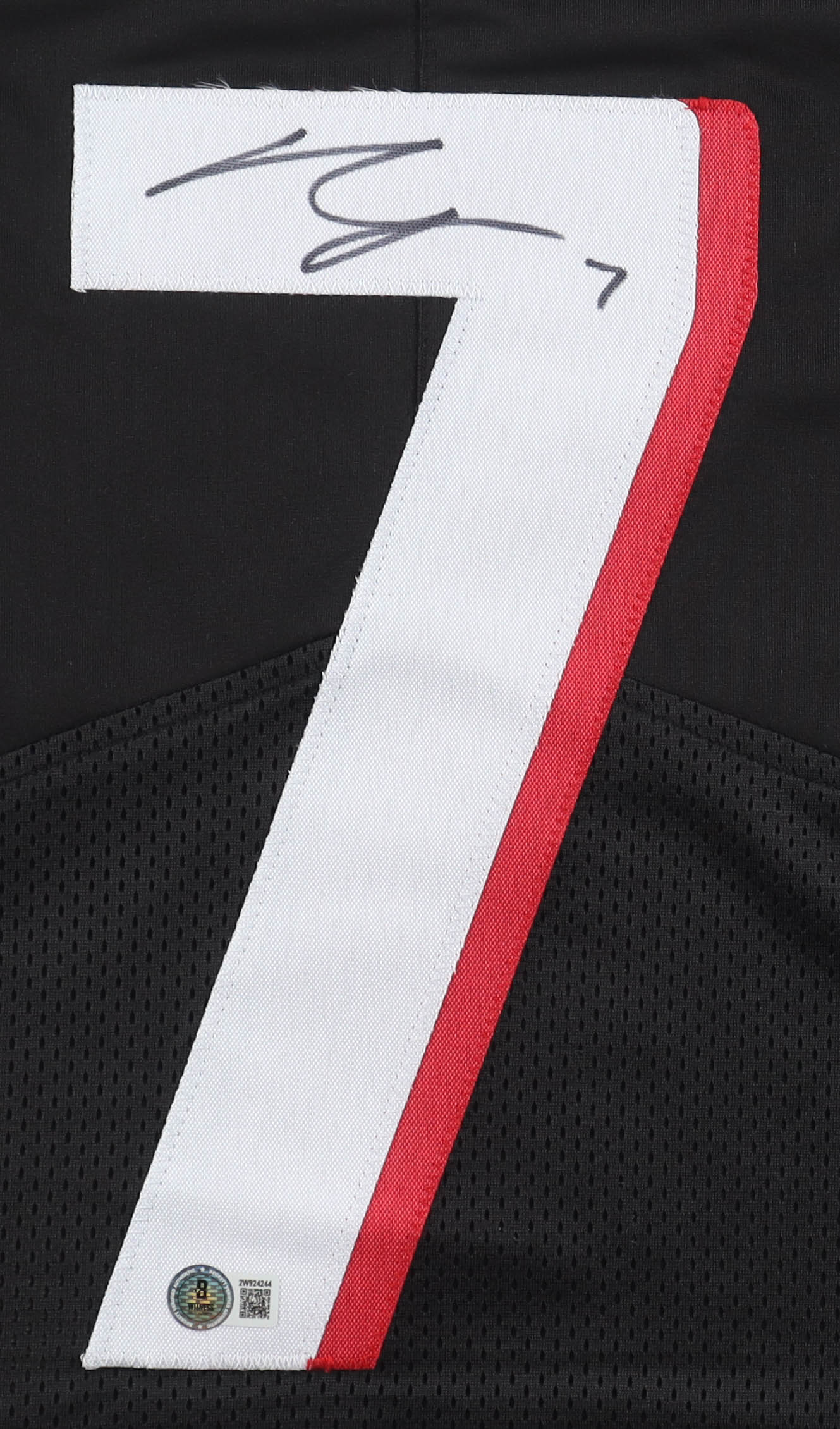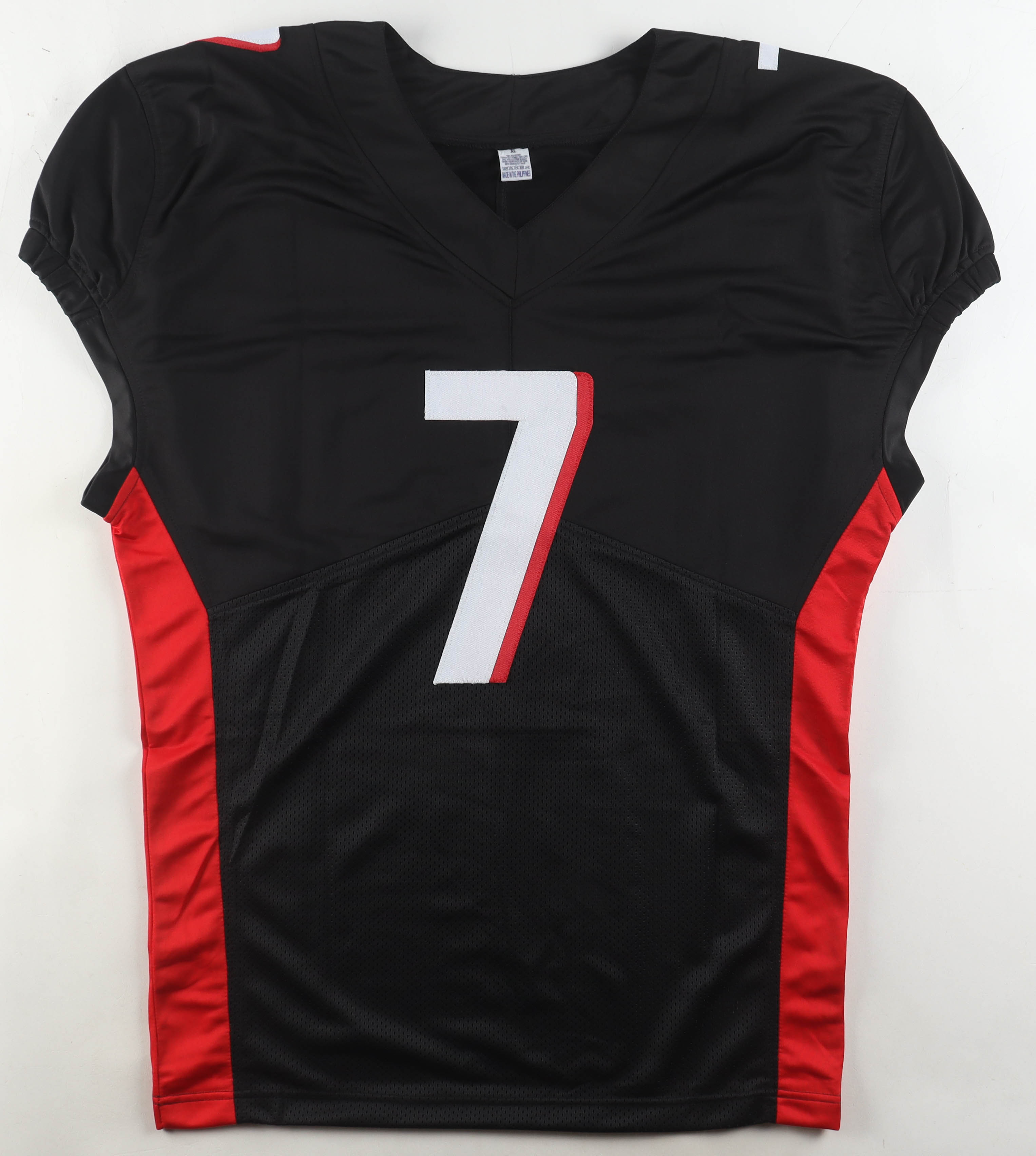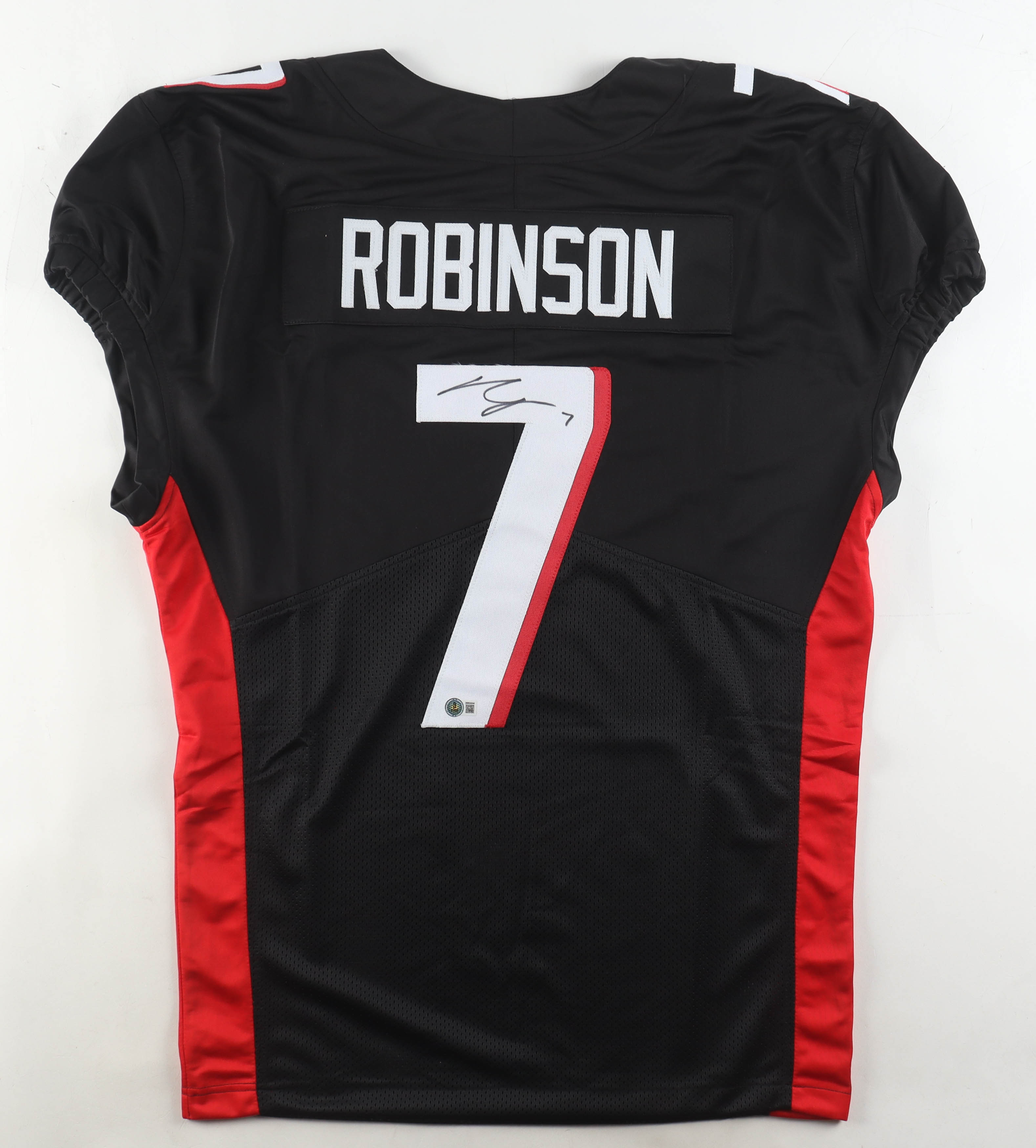 Custom jersey with everything sewn on, size XL. Hand-signed by Bijan Robinson.