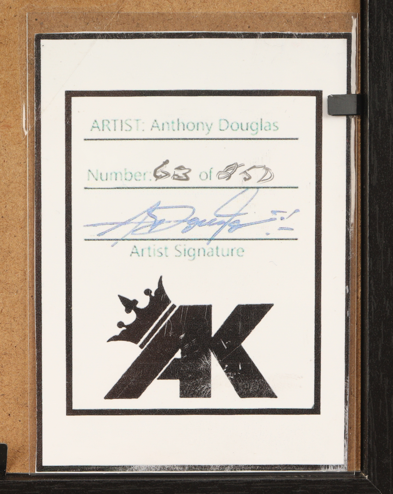 Custom frame measures approximately 12.5" x 15.5" in size and features a lithograph that has been hand-signed by the artist, Anthony Douglas. The display is limited edition and has been numbered #63/250. Please see photos for more details.