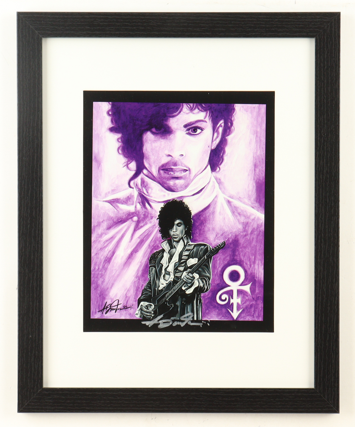 Custom frame measures approximately 12.5" x 15.5" in size and features a lithograph of Prince that has been hand-signed by the artist, Anthony Douglas. Please see photos for details regarding the condition of the frame.