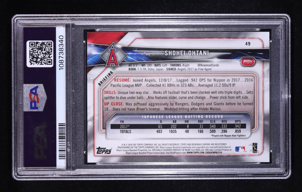 Shohei Ohtani 2018 Bowman #49 RC (PSA 10)